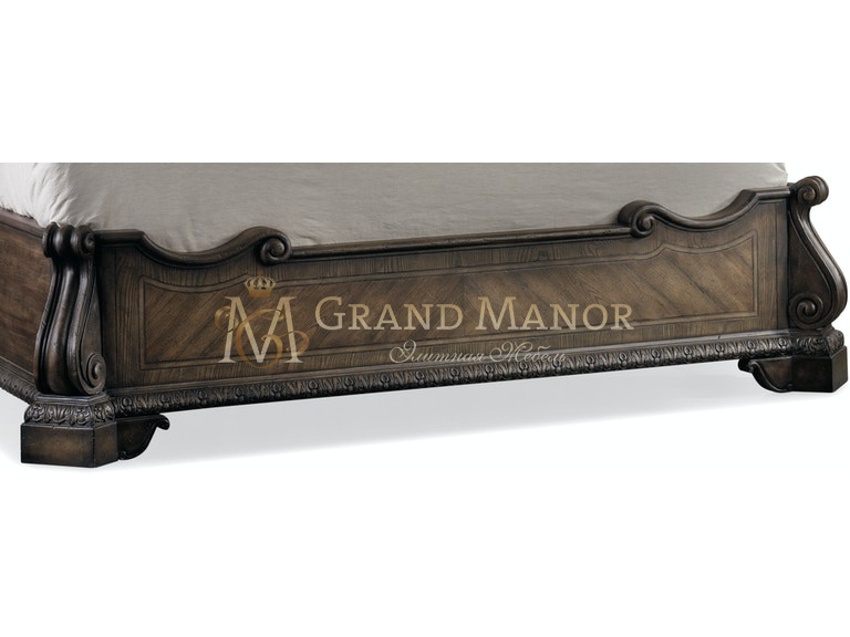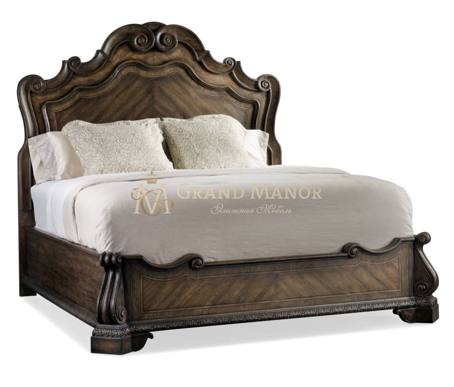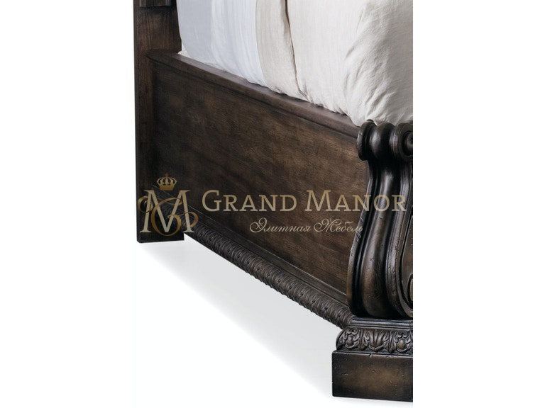 Дополнением является искусно вырезанное изголовье, украшенное фантазийными завитками.