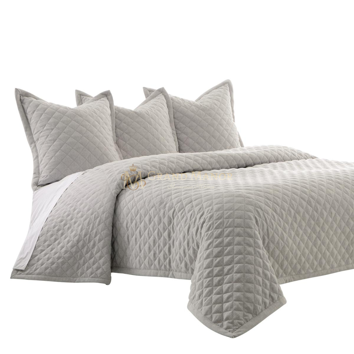 Насладитесь спокойствием с нашим стеганным комплектом Aragoza Dove. Это одеяло из льняной смеси успокаивающего голубовато-серого цвета с изысканным стеганым рисунком в форме ромба создает оазис безмятежности и шика в спальне. Выпускается в виде набора Queen из 3 предметов и набора King из 4 предметов.