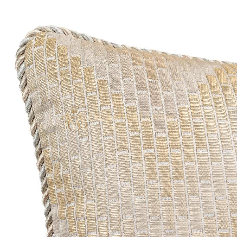 Двусторонние наволочки в тон украшены потайными молниями и контрастной отделкой шнуром.