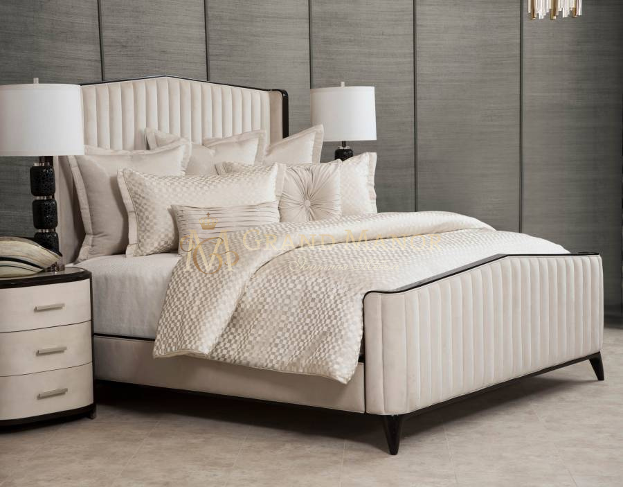 Комплект одеял Katerina готов превратить вашу спальню в шикарное и утонченное убежище! Тонкая жаккардовая ткань с геометрическим рисунком красивого цвета слоновой кости и эффектной текстурой. В комплекте с 2 декоративными подушками с набивкой из перьев и наволочками этот элегантный современный образ готов дополнить любой стиль спальни.