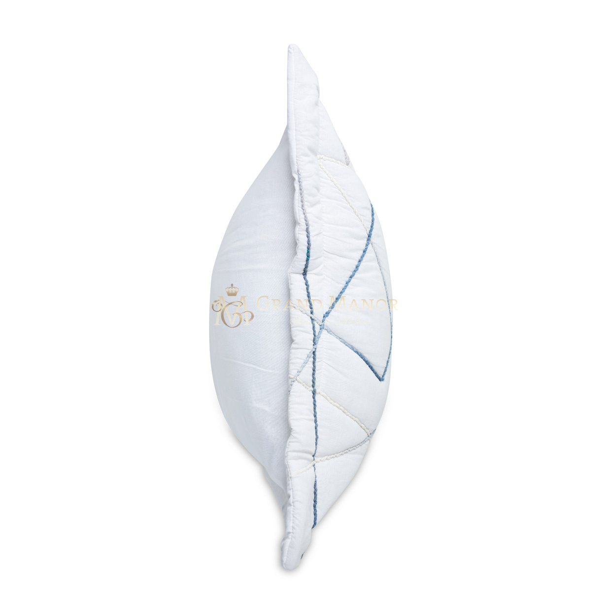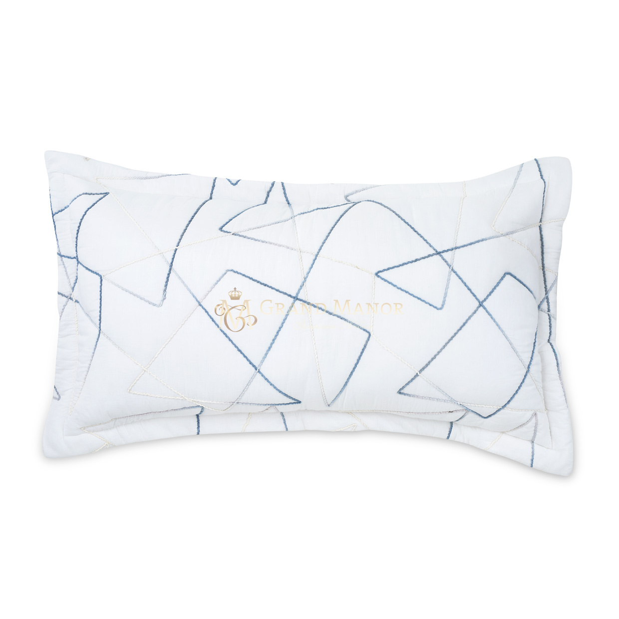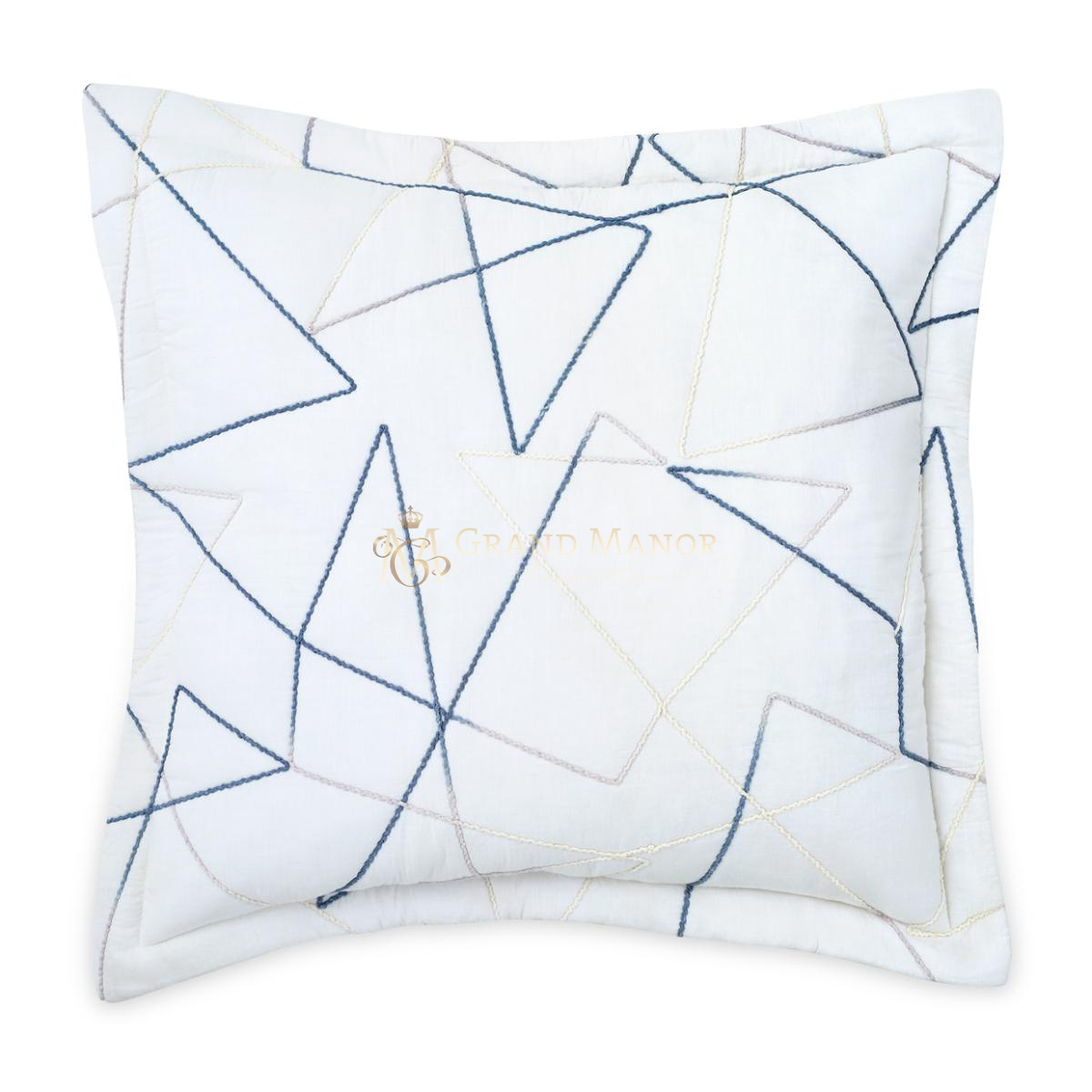 Комплект постельного белья Lennox с геометрической синей вышивкой космической окраски, пересекающей белоснежную хлопчатобумажную основу, станет идеальным дополнением вашей спальни или гостевой комнаты. Это покрывало не только удобное, но и легкое, что делает его идеальным постельным бельем. Мгновенно превратите любое пространство в место для отдыха.