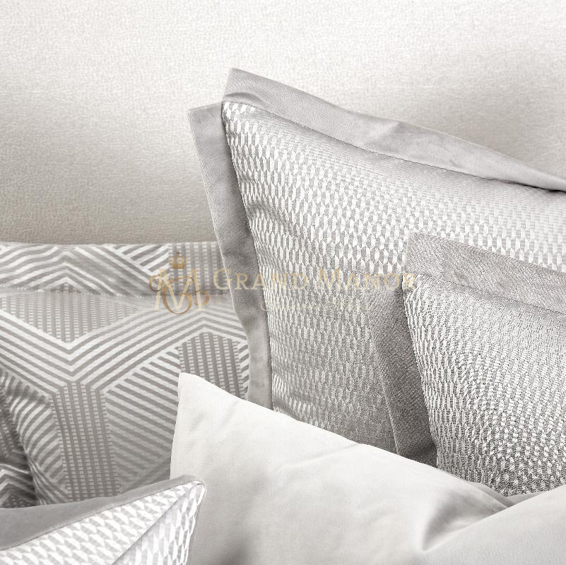 Комплект постельных принадлежностей в стиле модерн создан с учетом максимальной роскоши. Вдохновленный дизайном середины века, этот комплект постельного белья выполнен в мягких серых тонах, отличающих современные дома, а также в различных текстурах, которые создают глубину и гармонию в наборе. Наволочки сочетаются с покрывалом и гармонируют с акцентами. Завершают этот шикарный дизайн 4 декоративные подушки со съемными чехлами и наполнителем из перьев.