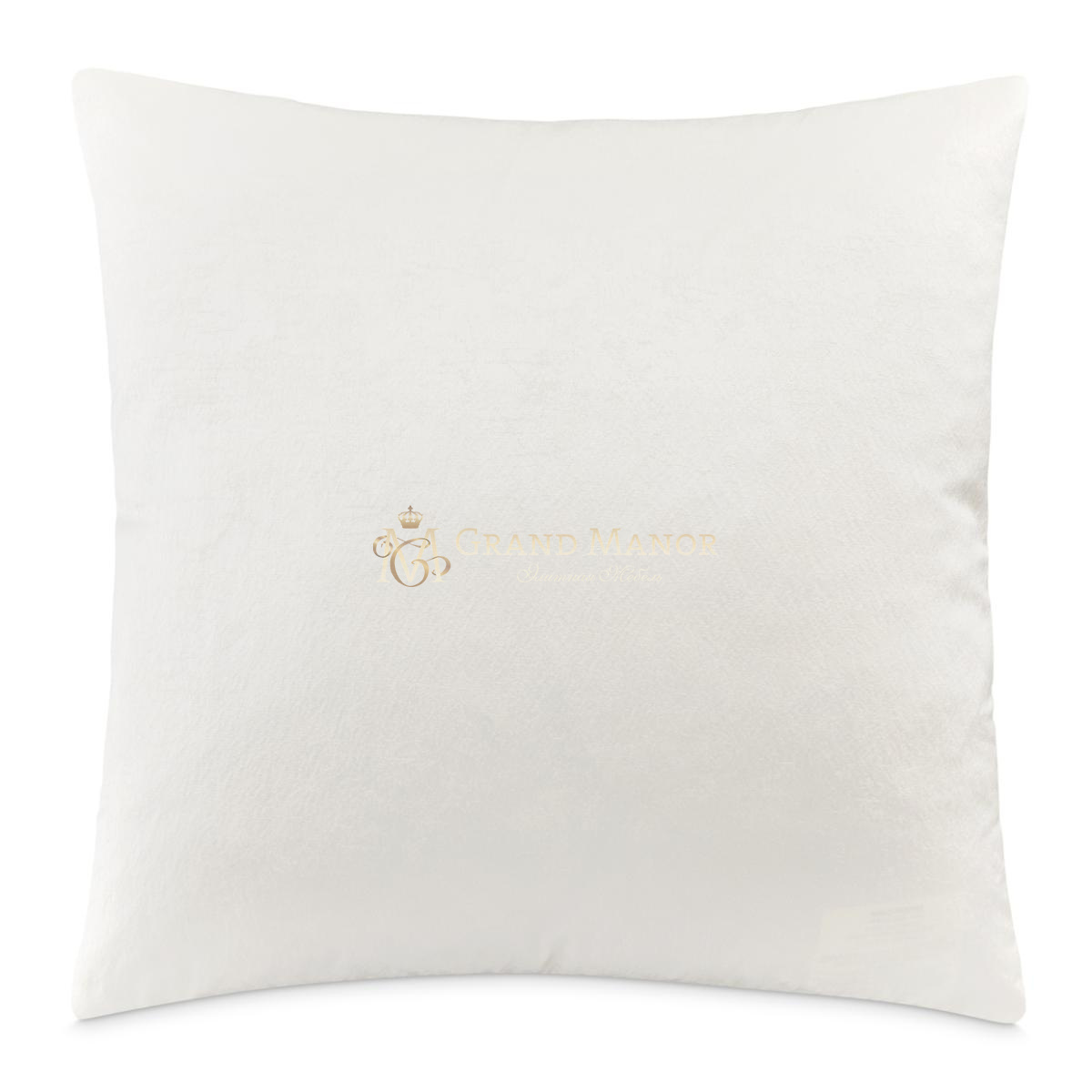 В комплект входит обратимая декоративная подушка, набитая перьями, со съемным чехлом на потайной молнии.