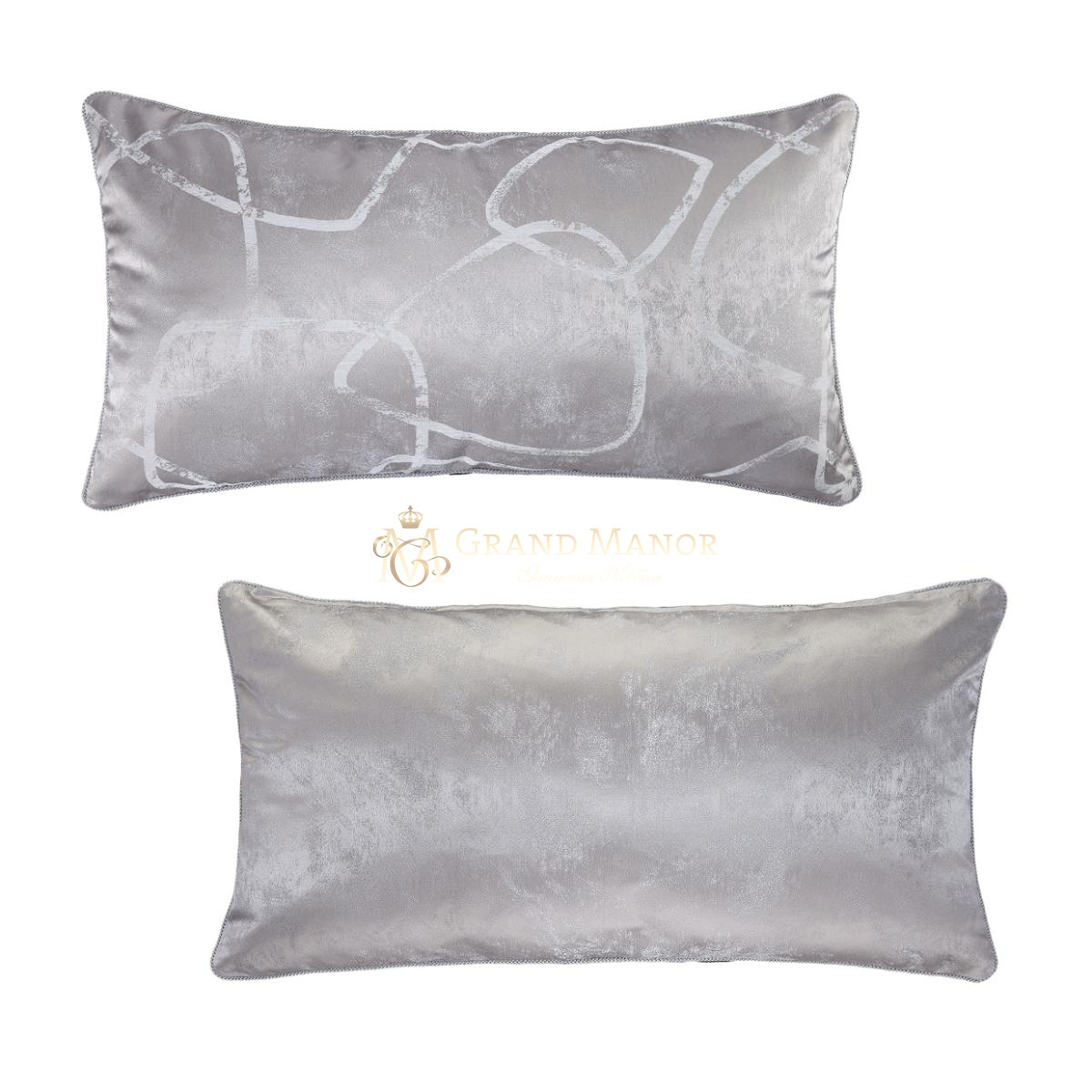 Серые бархатные наволочки украшены однотонным стеганым рисунком с обоих сторон.