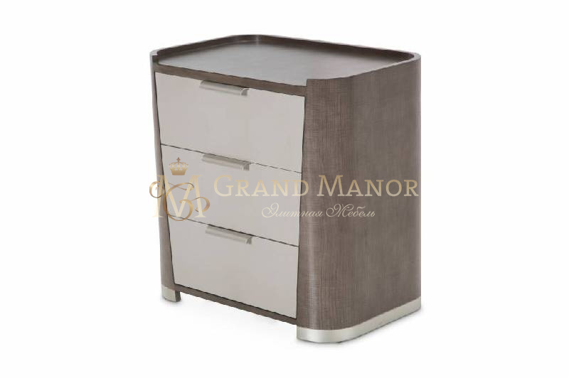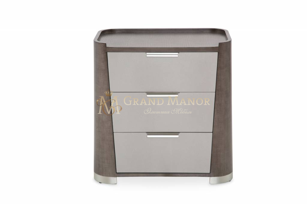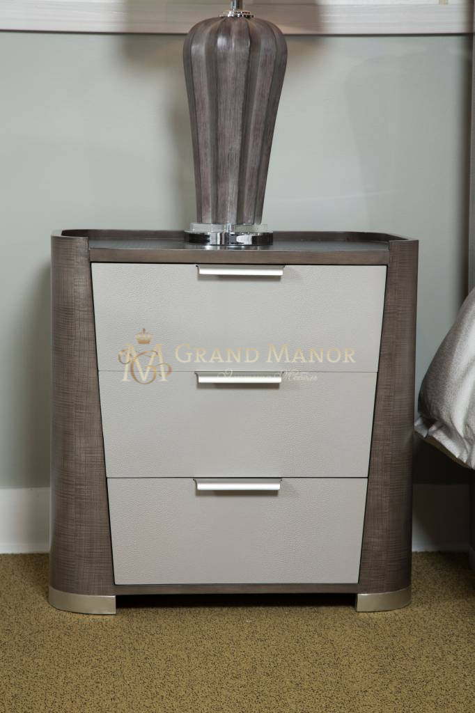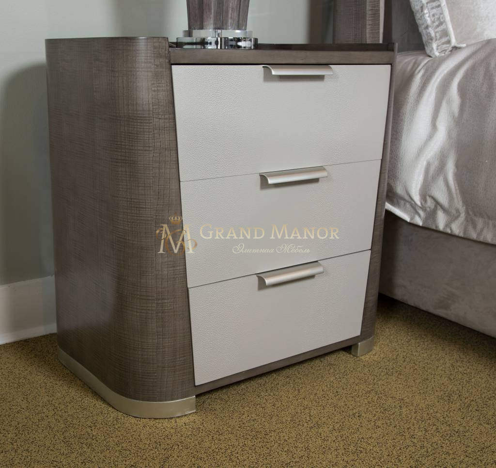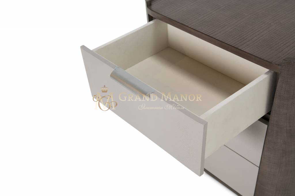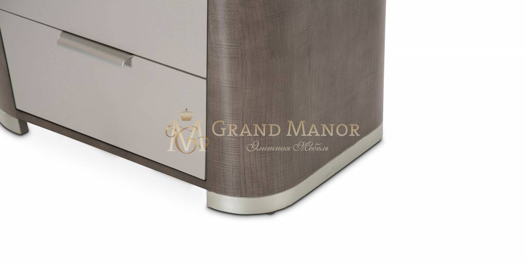 Фасады ящиков из искусственной шагреневой кожи с морозно-серой отделкой.