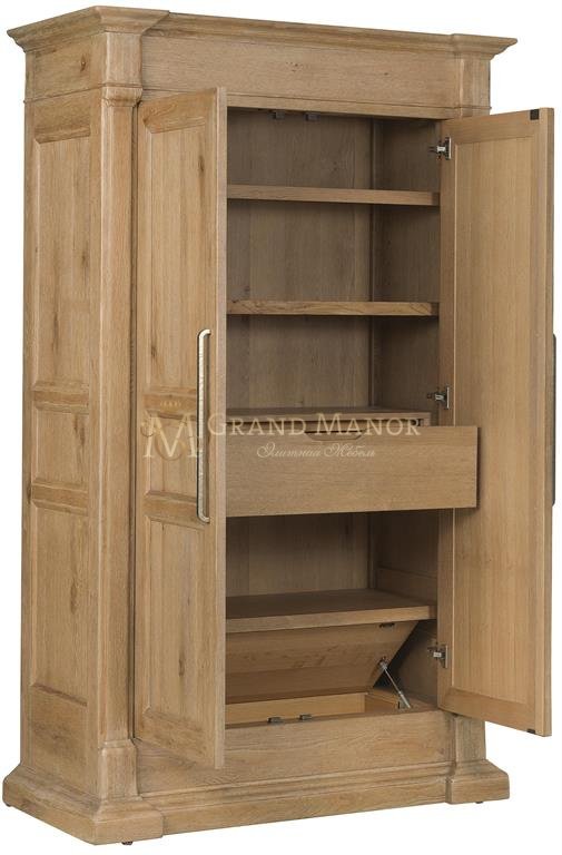 Этот шкаф с отделкой Buckboard предлагает универсальные возможности для хранения вещей благодаря двум дверцам во всю длину, двум регулируемым полкам, съемной штанге для одежды и выдвижному ящику с лотком для ювелирных изделий. Скрытое отделение для хранения с поднимающейся крышкой добавляет удобства, а петли с плавным закрыванием обеспечивают удобство использования.