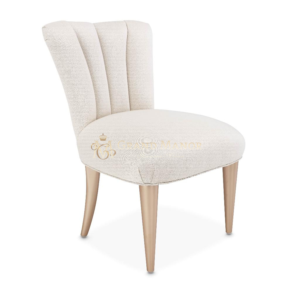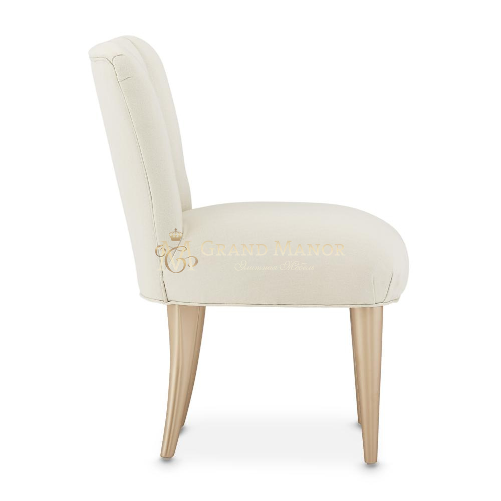 Стул обит тканой мерцающей тканью с вертикальными канавками на спинке.