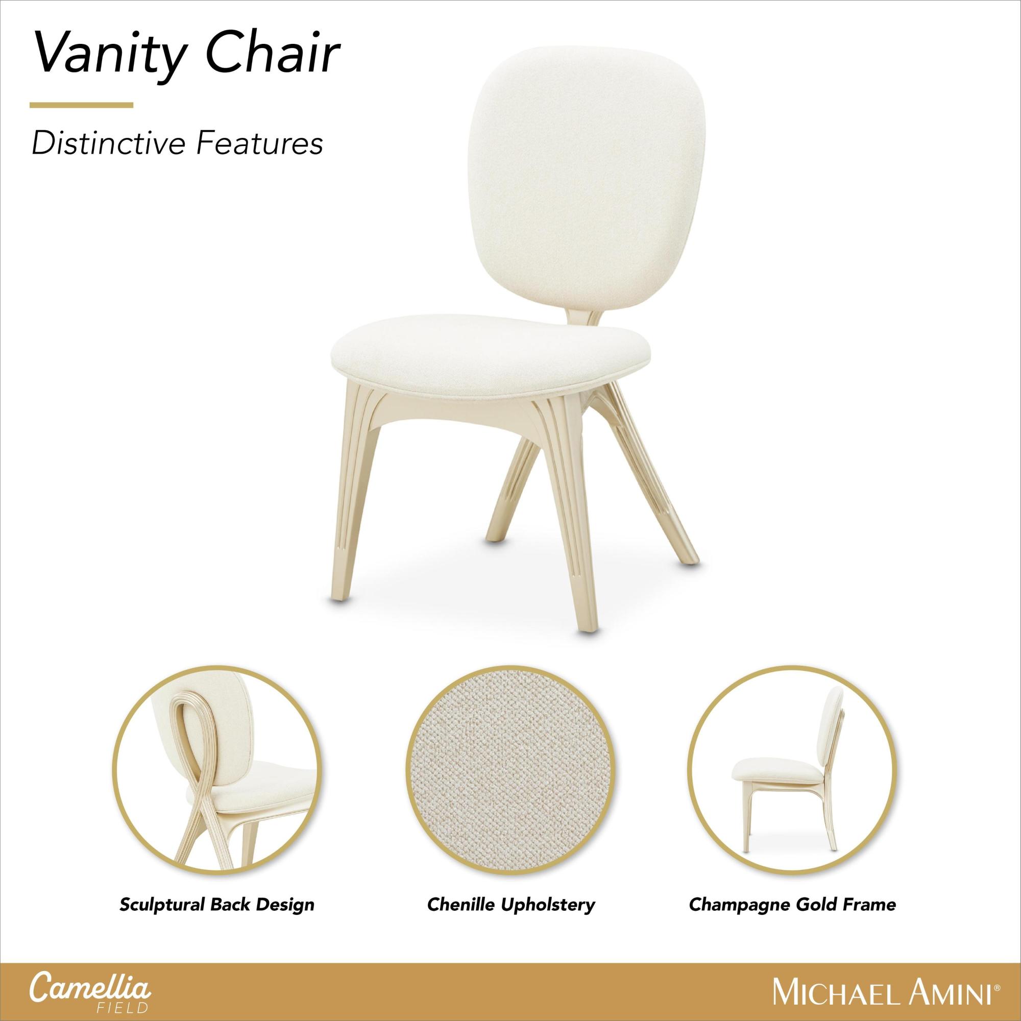 Туалетный стул Camellia Field представляет собой идеальное сочетание стиля и комфорта. Каркас выполнен из дерева золотистого цвета, а скульптурная спинка создает изящный силуэт. Обитый мягким шениллом, этот стул придает элегантный вид вашему туалетному столику, обеспечивая при этом комфортное сидение.