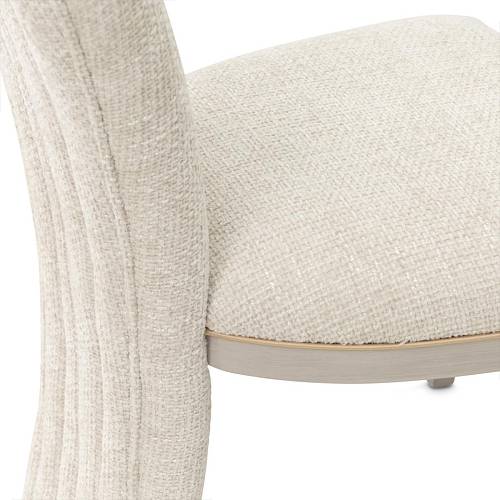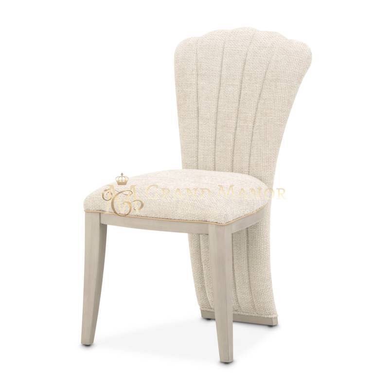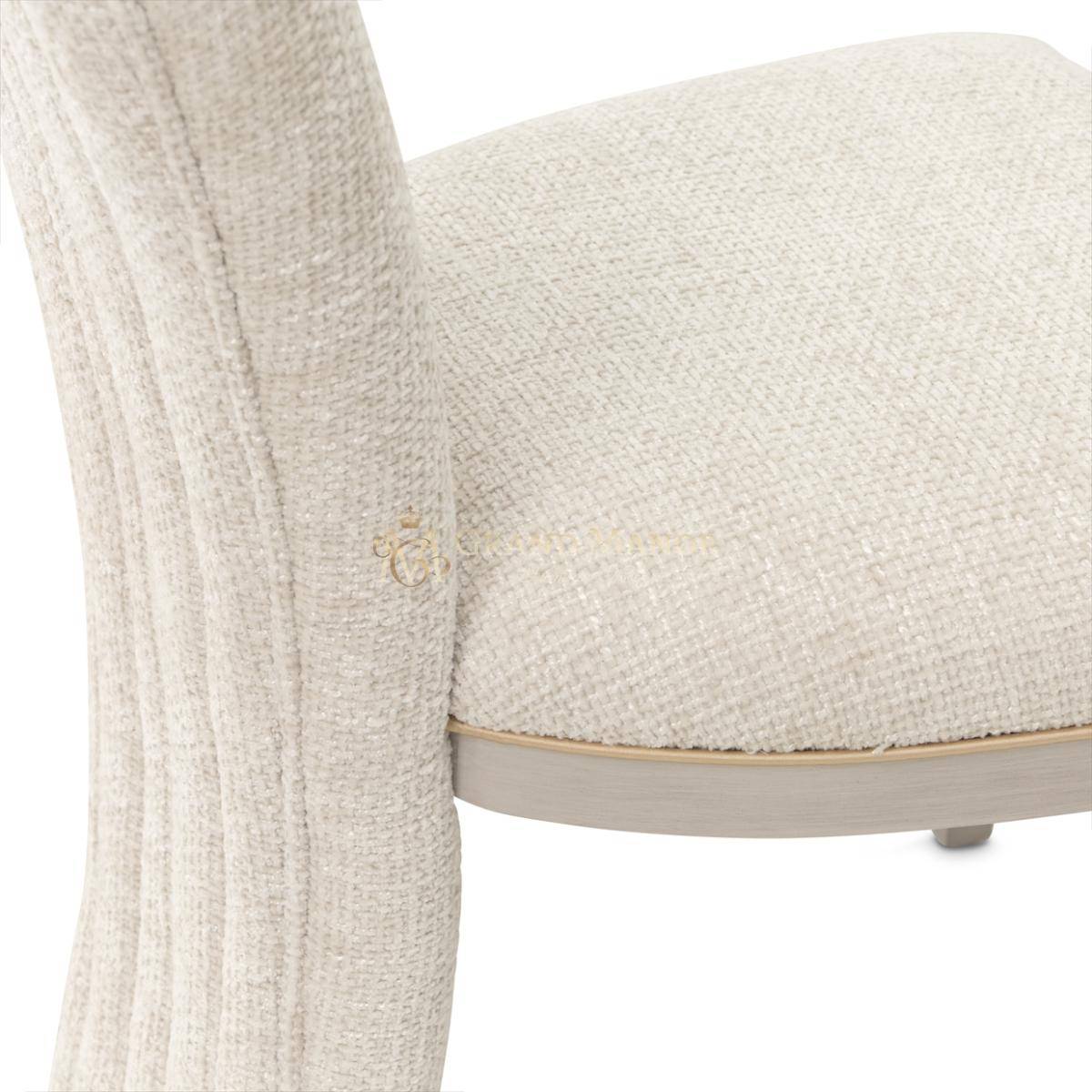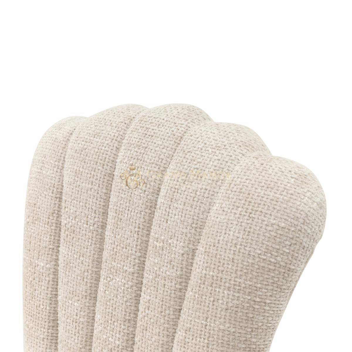 Украсьте свой ежедневный ритуал красоты изящными изгибами и роскошной текстурой туалетного стула Fantosini. Его гламурный силуэт, подчеркнутый мягкой фестончатой спинкой и смелыми вертикальными швеллерами, подчеркивает неподвластную времени элегантность в современном стиле. Кресло, обитое мягкой тканью цвета капучино, в которой сочетаются мягкие серые и натуральные оттенки, излучает сдержанную изысканность. Массивная рама из каучукового дерева с серебристой матовой отделкой создает гладкую скульптурную основу, а прорези придают сиденью и спинке изысканный акцент.