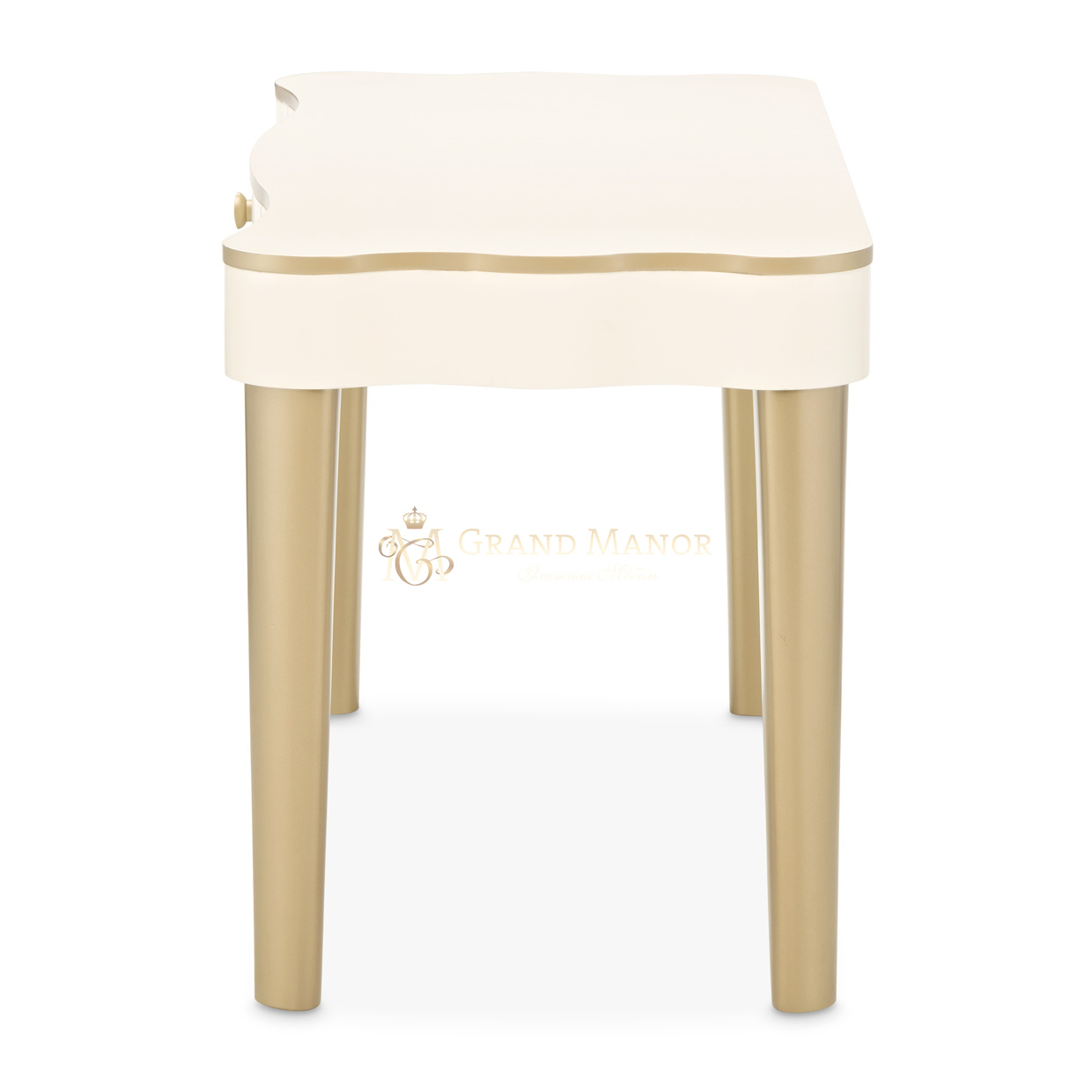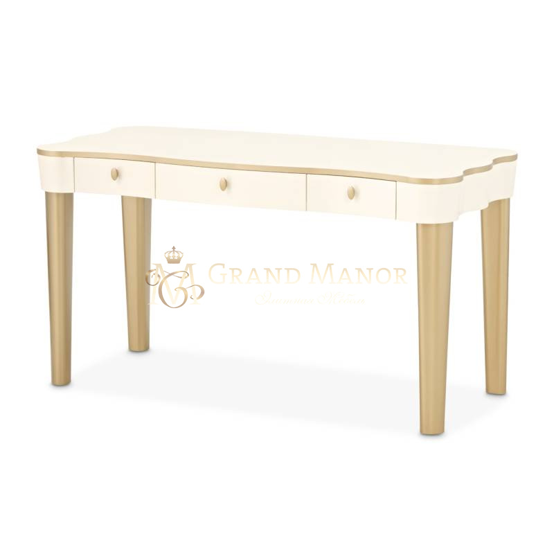 Туалетный столик La Terrazza — это сочетание стиля и функциональности. Его плавные волнистые линии в кремово-жемчужном цвете подчеркивают скульптурную элегантность. Заостренные ножки золотистого оттенка добавляют изысканности. Этот столик универсален: он может служить как туалетным, так и письменным столом. В трех выдвижных ящиках удобно хранить косметику или офисные принадлежности. Отделанная задняя стенка позволяет ставить его на открытых пространствах. La Terrazza привнесет нотку роскоши в спальню, гардеробную или домашний офис.