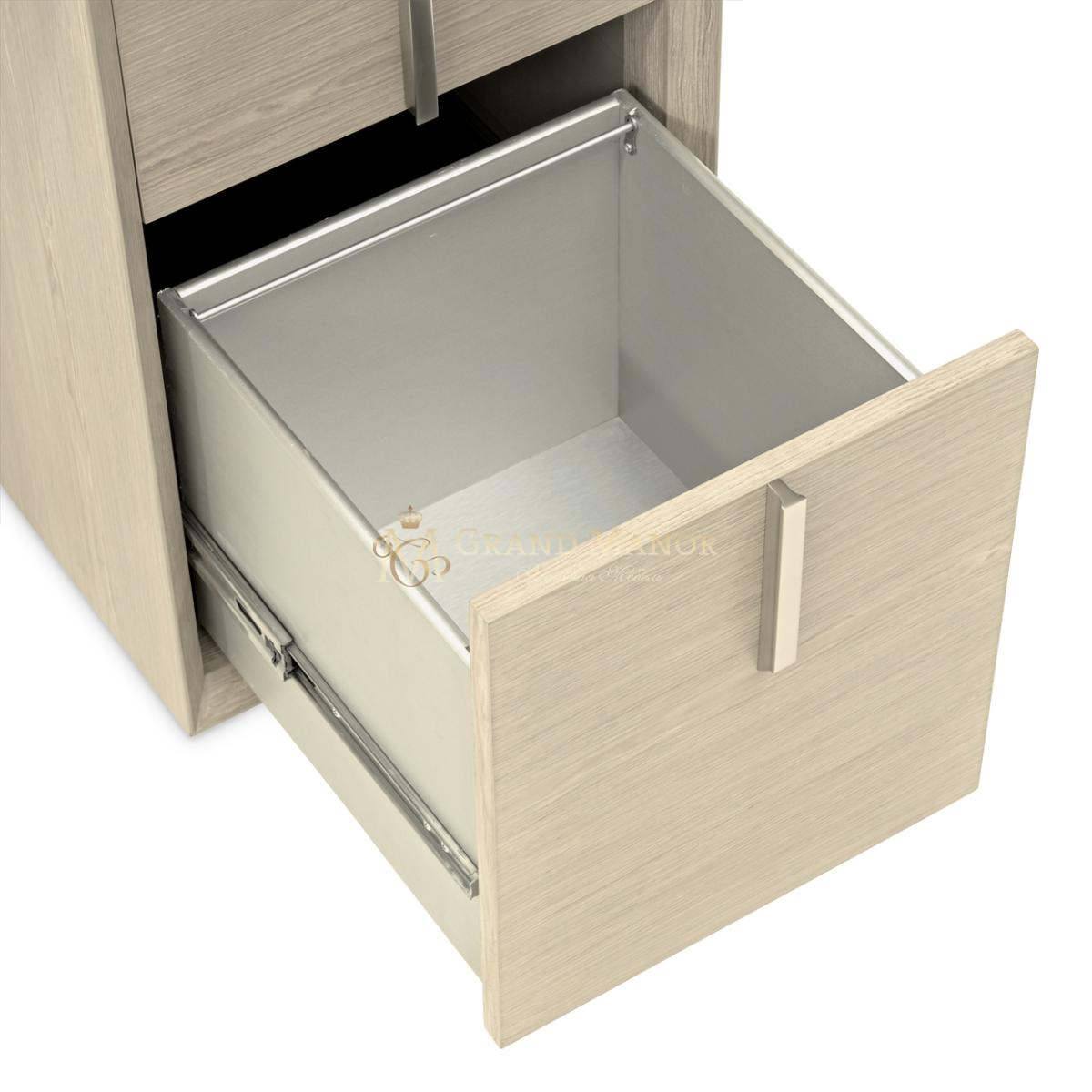 В верхнем ящике спрятаны две розетки и USB-порты, обеспечивающие бесперебойное подключение косметических принадлежностей или ноутбуков, а в нижнем ящике расположены стержни для организации файлов. Отделанное со всех сторон, это изысканное изделие так же эффектно смотрится сзади, как и спереди, что гарантирует его привлекательность независимо от того, где оно находится.