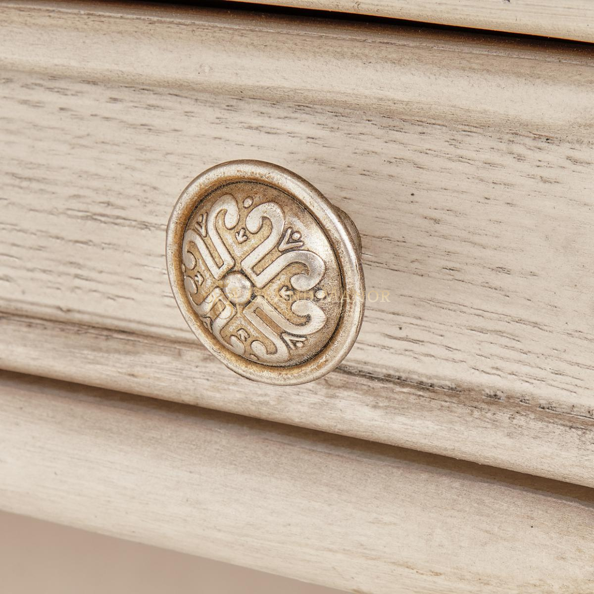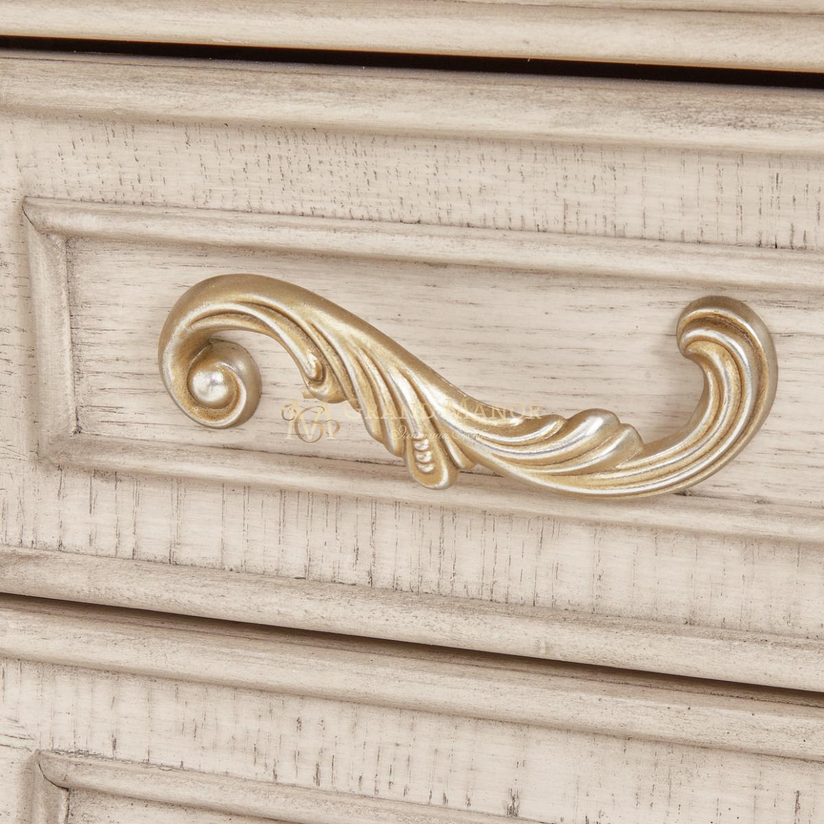 Ручки из литого металла, отделанные старинной платиной, придают изделию роскошный вид.
