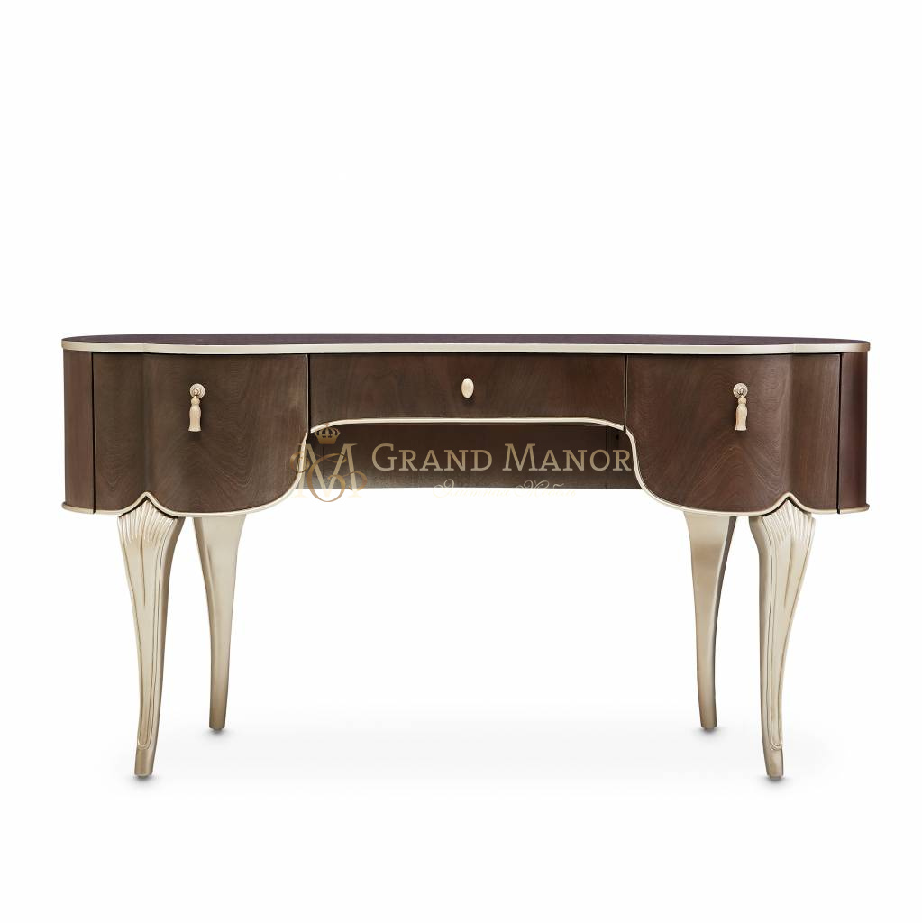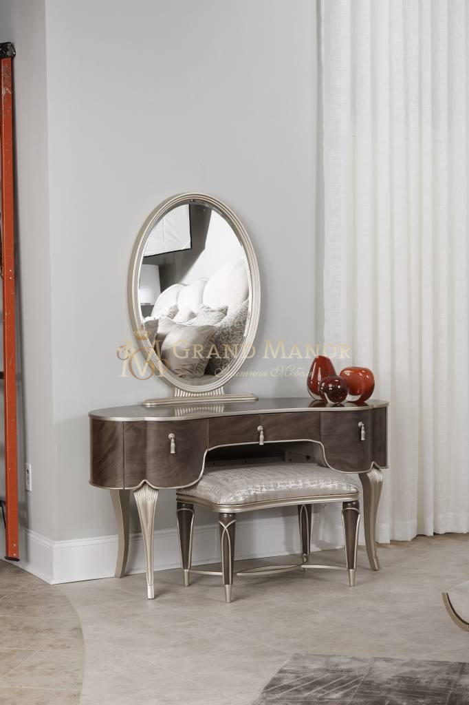 Туалетный столик украшен предварительно окрашенной рамой из красного дерева с отделкой Hazelnut.