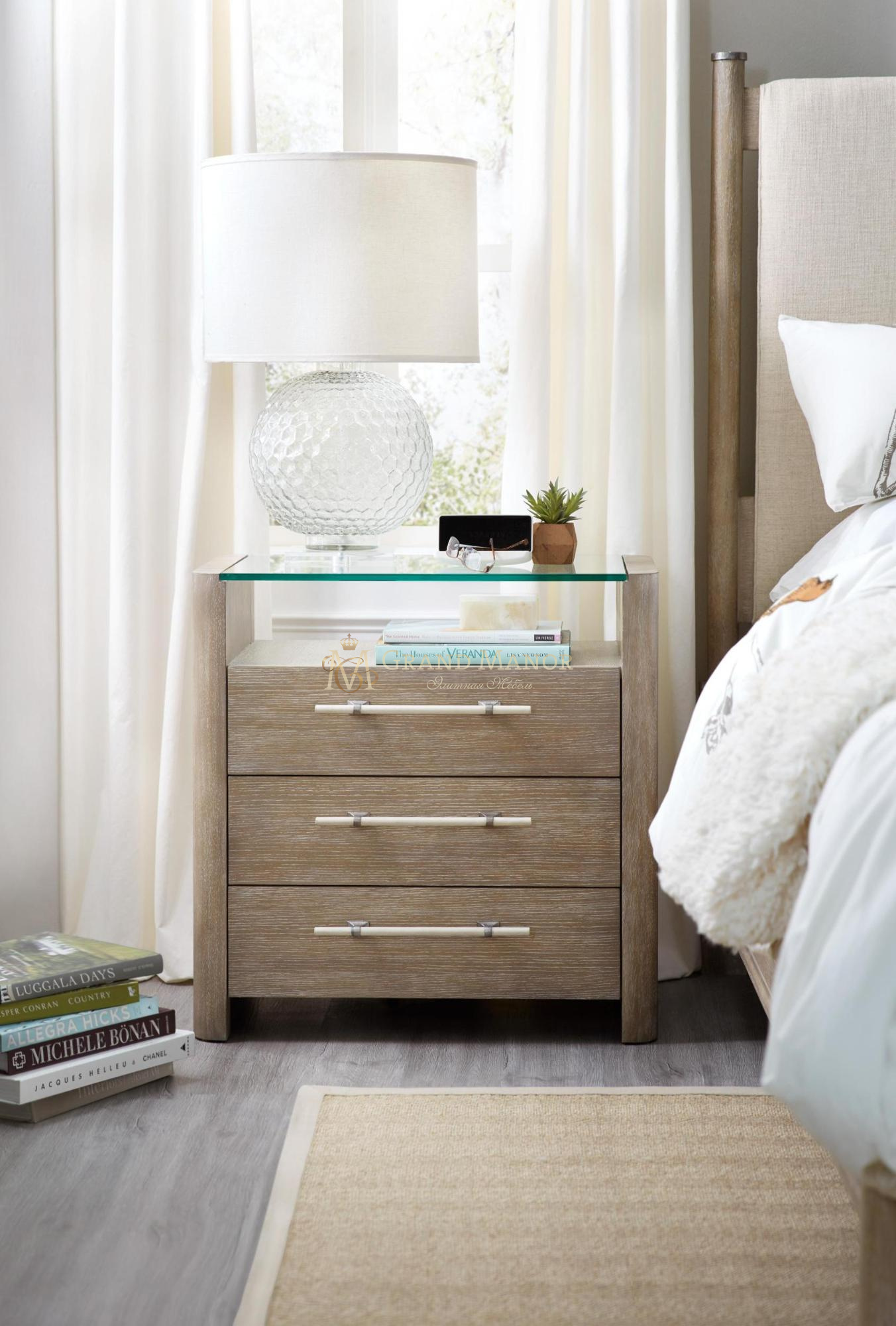 Пескоструйная отделка дубового шпона с оловянными ручками, три ящика, стеклянная верхняя полка, выравниватели, сенсорный выключатель диммера для лампы.