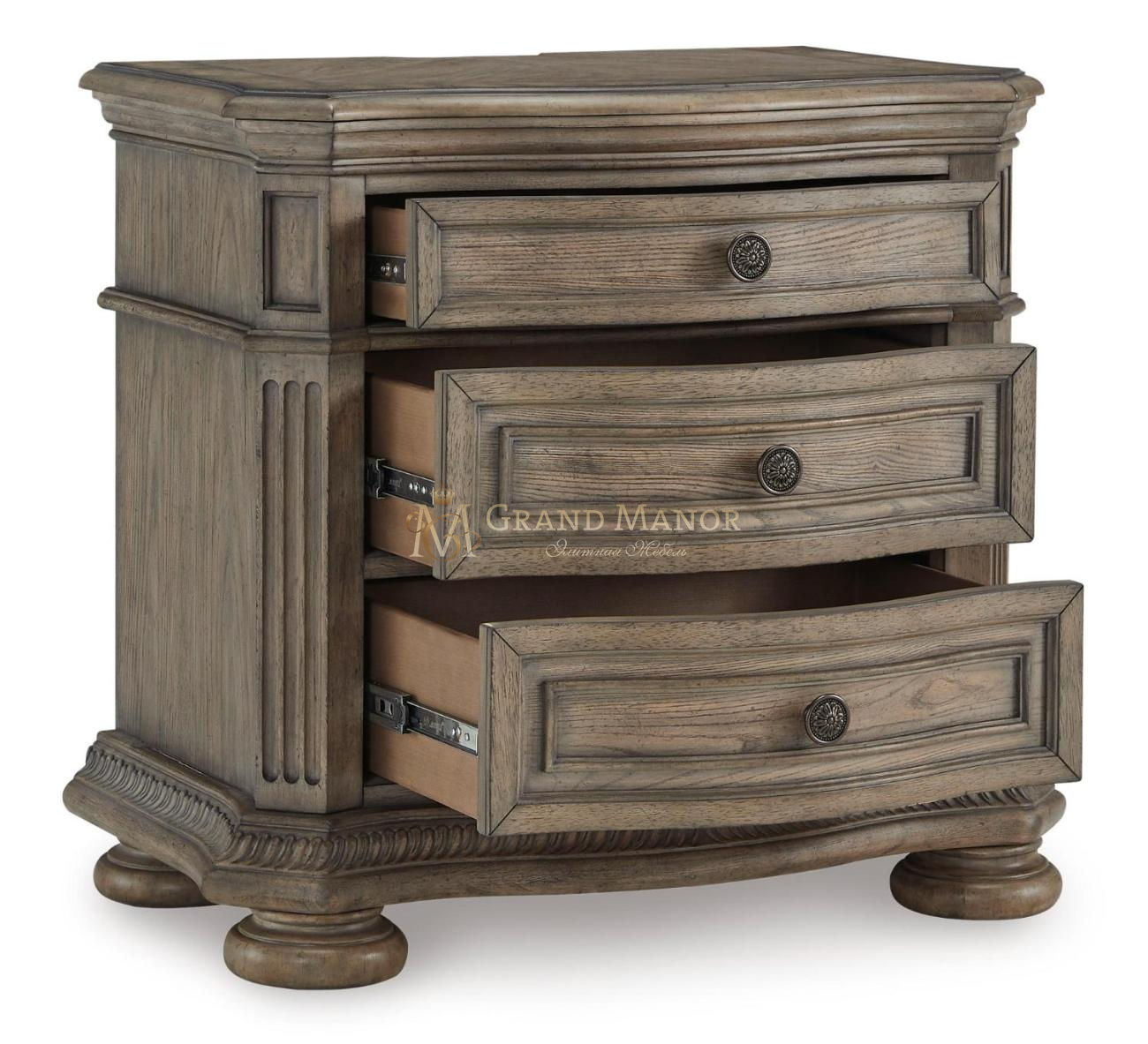 Объединяя традиционную элегантность с современным комфортом, эта тумбочка выводит вашу спальню на новый уровень. Извилистые изгибы, инкрустации из ясеневого шпона и глазурованная отделка под старину излучают непреходящую изысканность. Ящики выполнены с достаточным количеством мест для хранения.