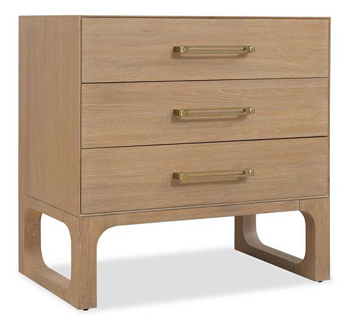 Прикроватная тумбочка Banyon Bay с тремя выдвижными ящиками придаст вашей кровати функциональность и стиль. Она изготовлена из массива белого дуба и дубового шпона с отделкой из светлого пустынного дуба и обработана брашированием для придания текстурированного внешнего вида.
