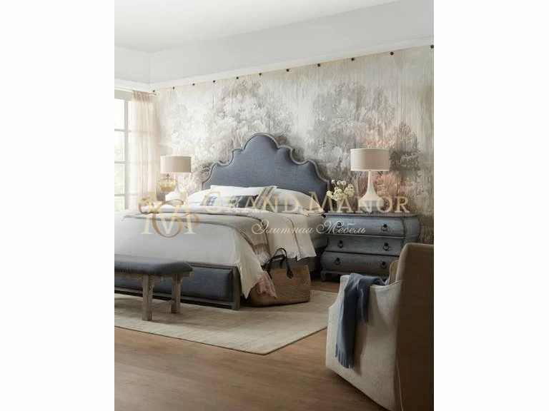 Синяя отделка с оттенками натурального дерева.