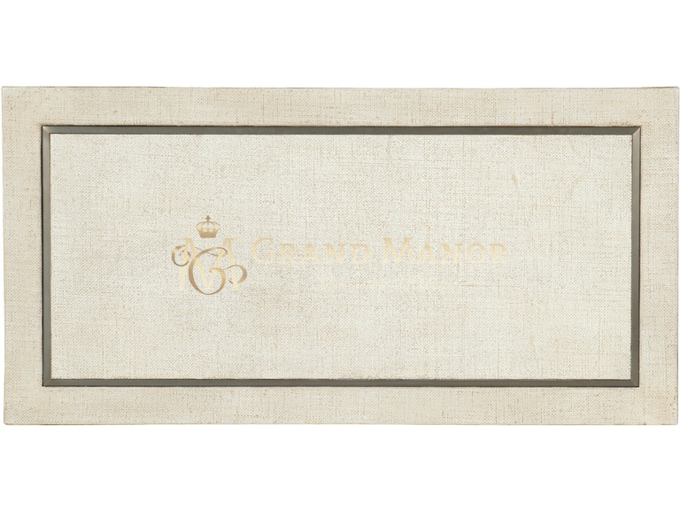 Металлическая инкрустация цвета шампанского вокруг верхней, средней и нижней полок.
