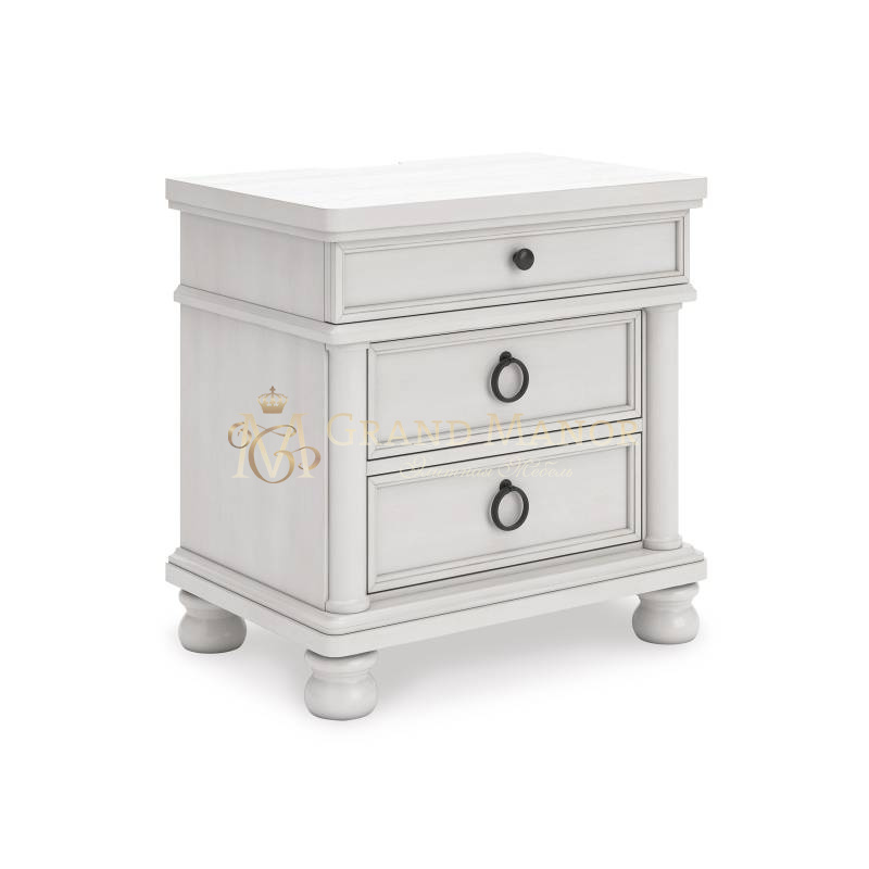 Эта искусно выполненная прикроватная тумбочка в непринужденном традиционном стиле сочетает в себе классические элементы и лаконичный современный дизайн. Ее потертая состаренная белая отделка излучает уютную, неподвластную времени привлекательность, которая перенесет вас в сказочную страну. Простая круглая металлическая ручка и кольца на вместительных ящиках тумбочки выглядят очень стильно, а встроенная розетка и USB-порт для зарядки позволят вашим устройствам оставаться заряженными всю ночь.