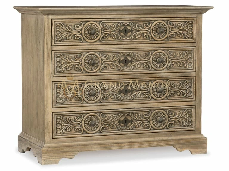 Четыре выдвижных ящика с резьбой на фасадах. Нижний ящик с кедровым дном.