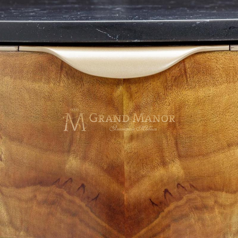 Три выдвижных ящика обиты бархатом и оснащены самозакрывающимися направляющими.