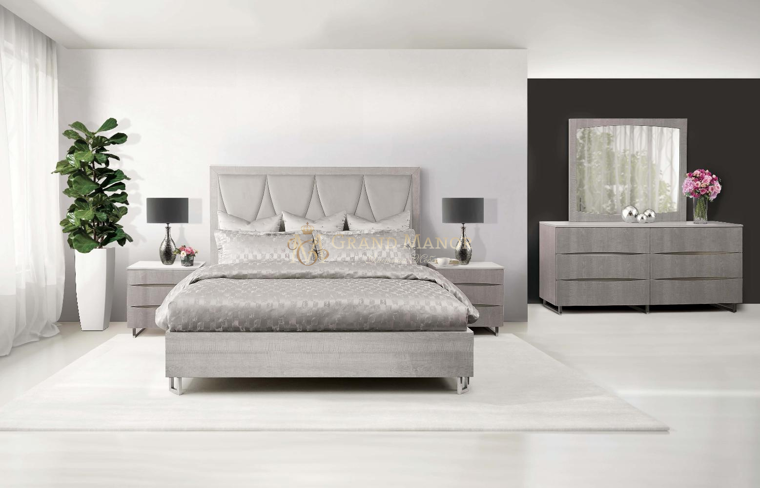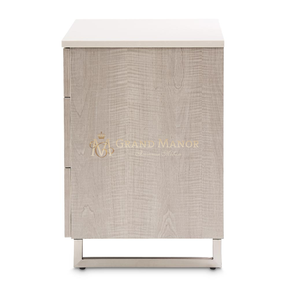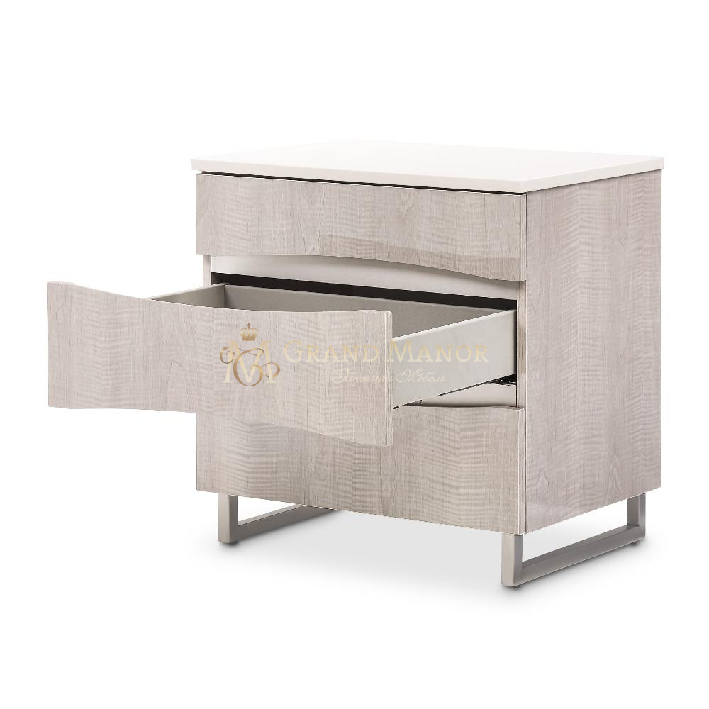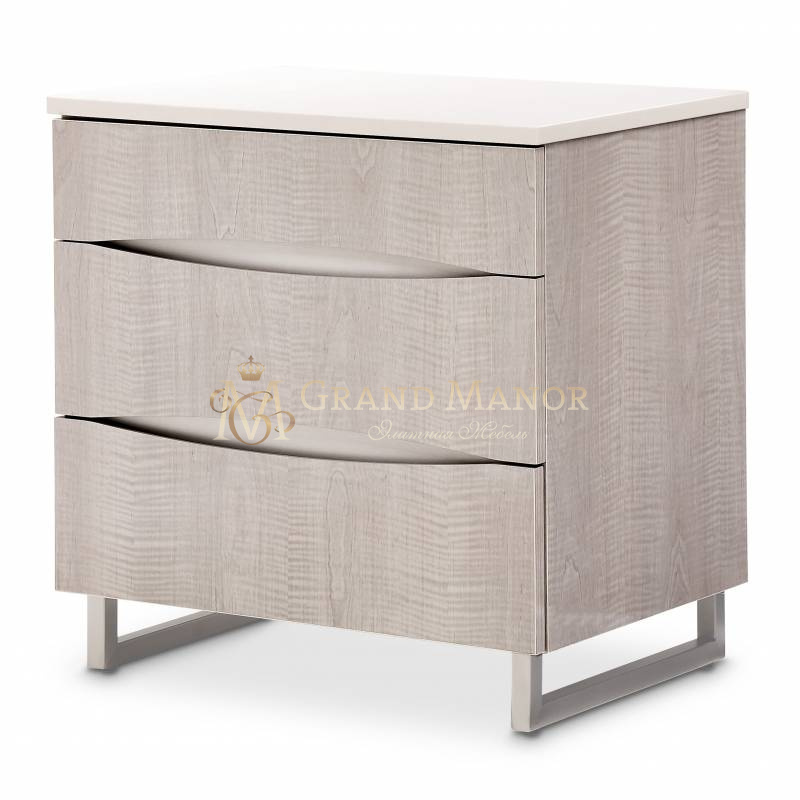Прикроватная тумбочка содержит три обшитых бархатом выдвижных ящика с самозакрывающимися направляющими для удобства использования.