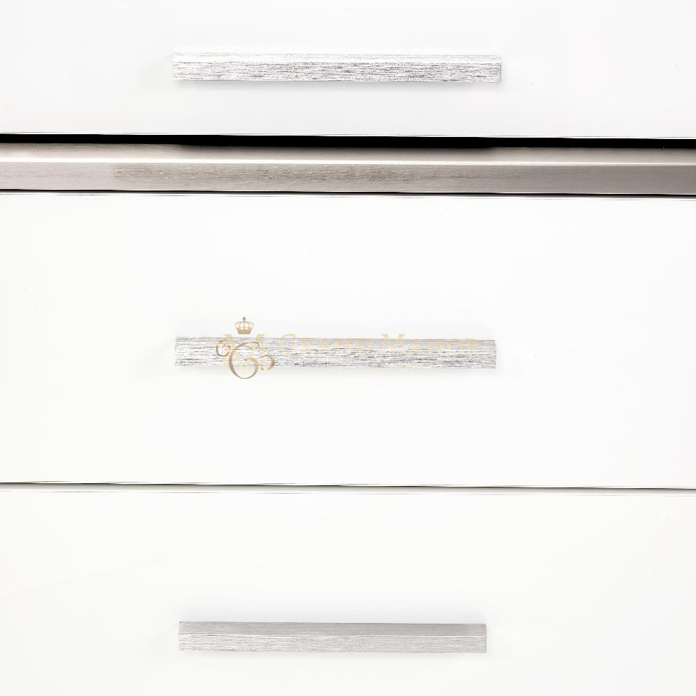 Три выдвижных ящика обиты бархатом, с самозакрывающимися направляющими и матовыми ручками из нержавеющей стали.