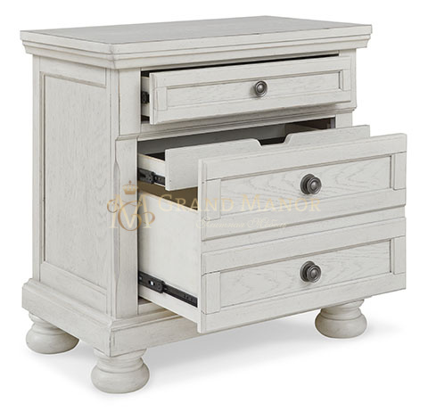 Войлочная отделка верхнего ящика и скрытый выдвижной лоток завершают образ спальни, созданной со вкусом.