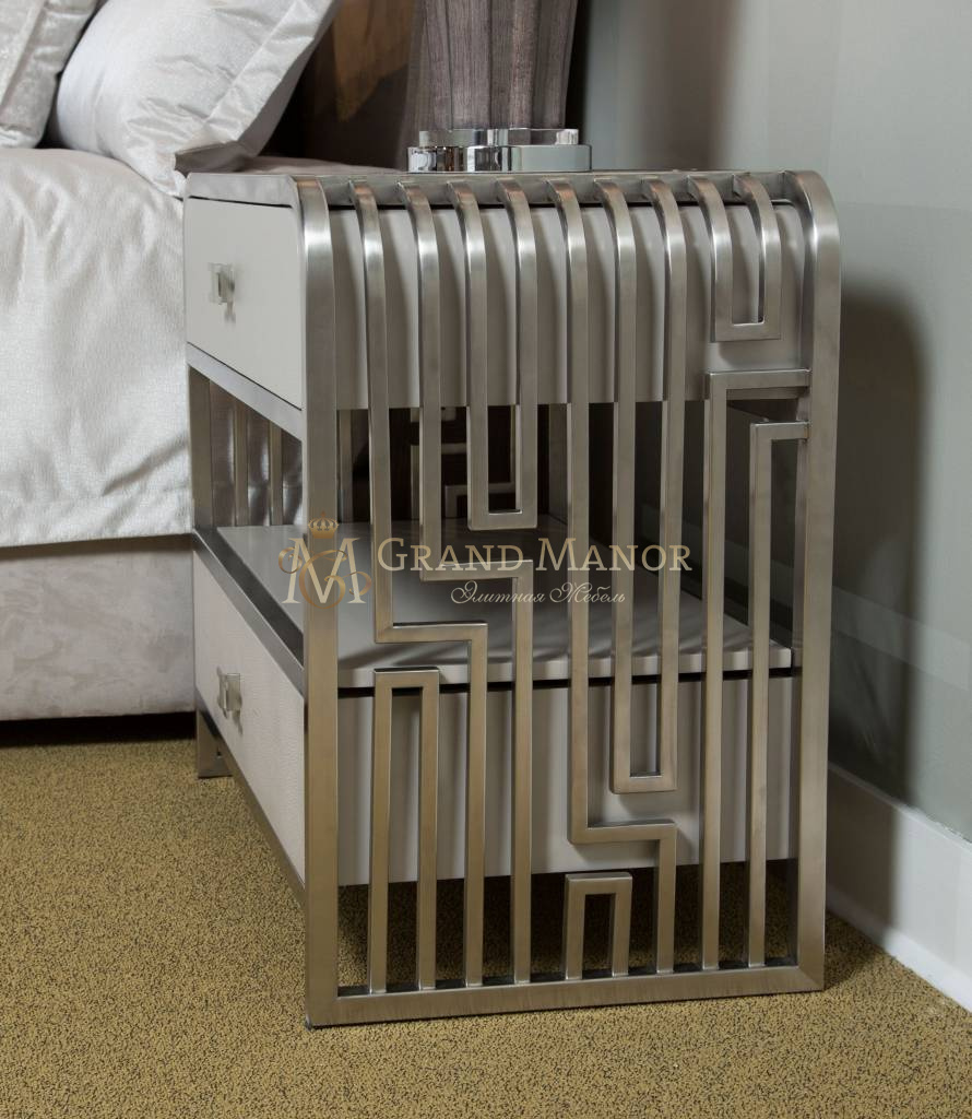Придайте вашему дому городской шик с этим изящным прикроватным столиком от Roxbury Park! Его морозно-серые оттенки и элегантная геометрическая рама из нержавеющей стали сделают каждый день особенным.