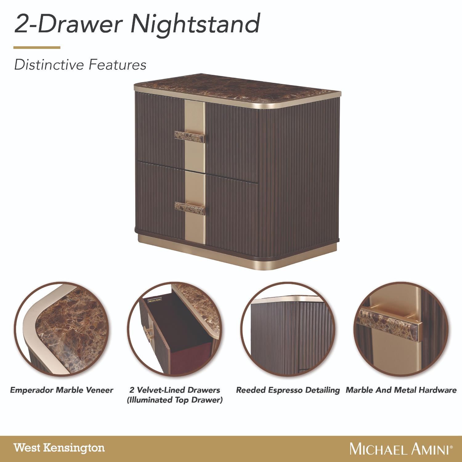 В прикроватной тумбочке West Kensington, являющейся вершиной изысканности, изысканные материалы органично сочетаются с современной функциональностью.
