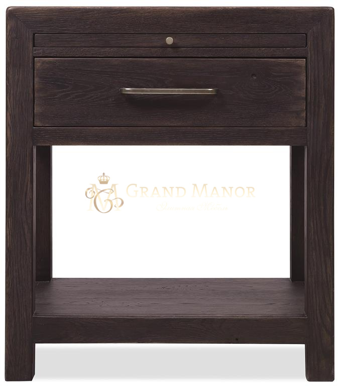 Прикроватная тумбочка Driftwood с одним выдвижным ящиком, выполненная из жженой древесины, с эффектной темной отделкой, сочетает в себе практичность и стиль. Она включает в себя самозакрывающийся ящик, выдвижную полку и фиксированную нижнюю полку, а также зажим для проводов.