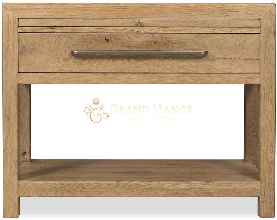 Эта прикроватная тумбочка, выполненная из массива дуба и камня, оснащена одним самозакрывающимся ящиком, выдвижным лотком и фиксированной нижней полкой. Столешница из камня придает ей красоту и долговечность.
