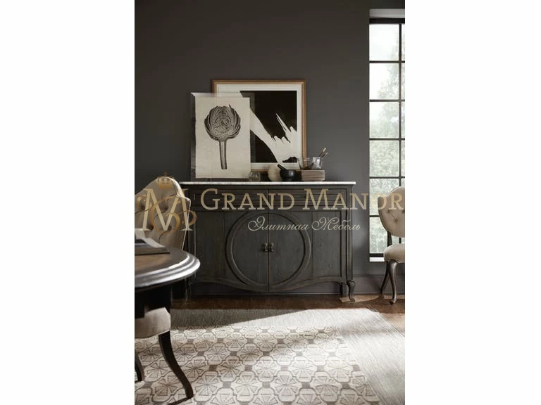Темно-графитовая отделка, светлая мраморная столешница, четыре двери.