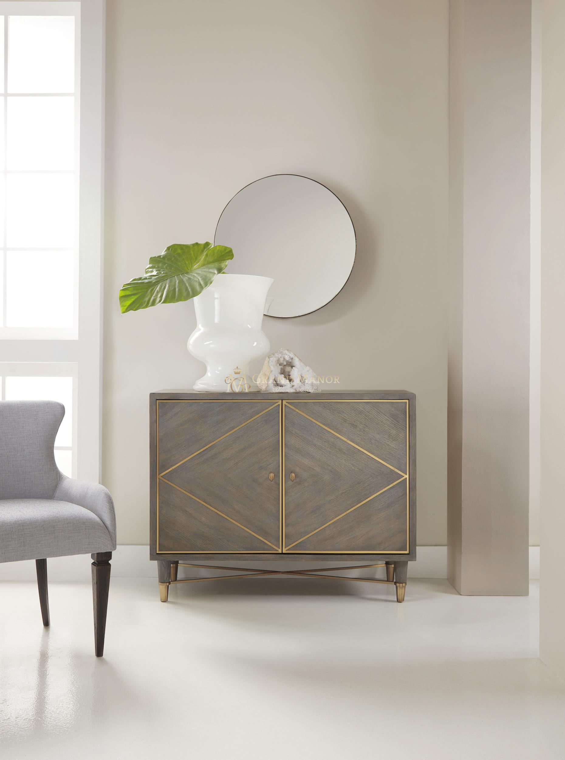 Серая отделка с золотыми вставками, ручки золотого цвета.
