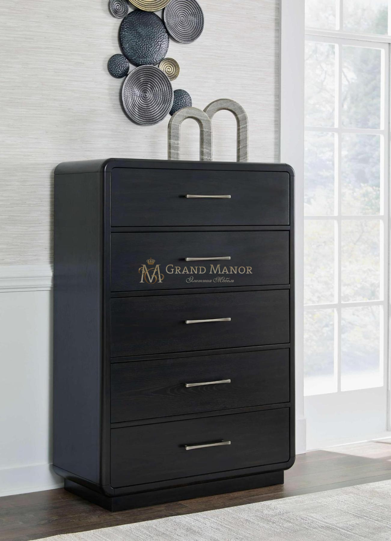 Его великолепный изогнутый силуэт подчеркивается богатой многослойной черной отделкой на текстурированной поверхности под дерево.