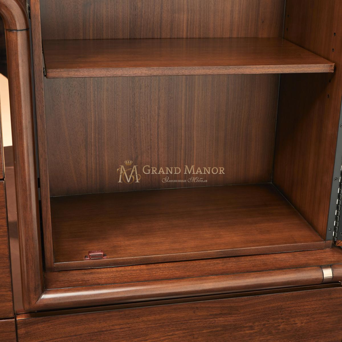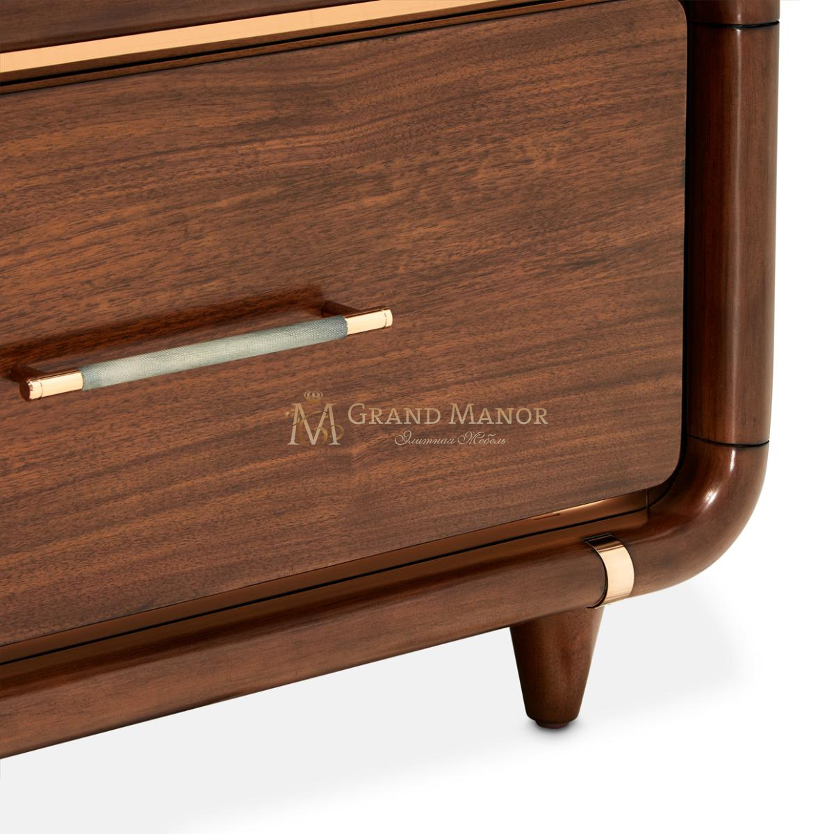 Облицовка ореховым деревом с отделкой цвета умбры и золотыми вставками дополняет его изысканный дизайн.