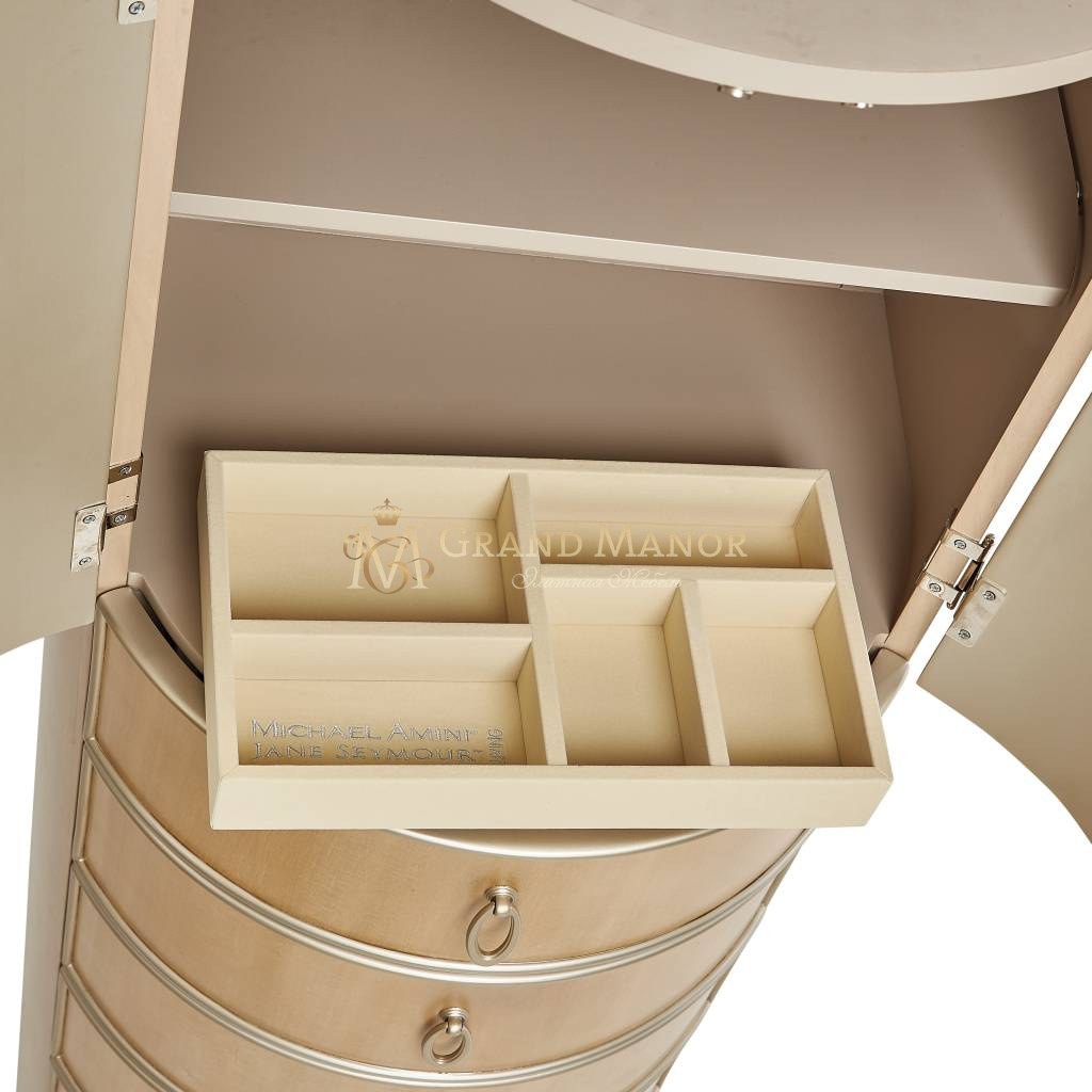 В шкафу находится съемный футляр для ювелирных изделий на бархатной подкладке.