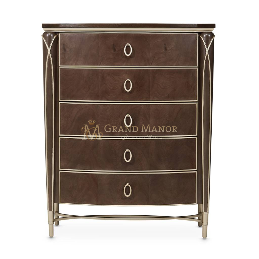 Сделайте заявление с комодом Villa Cherie. Шикарные детали, отделка цвета шардоне и ящики с бархатной подкладкой готовы сделать вашу жизнь простой, красивой и современной.