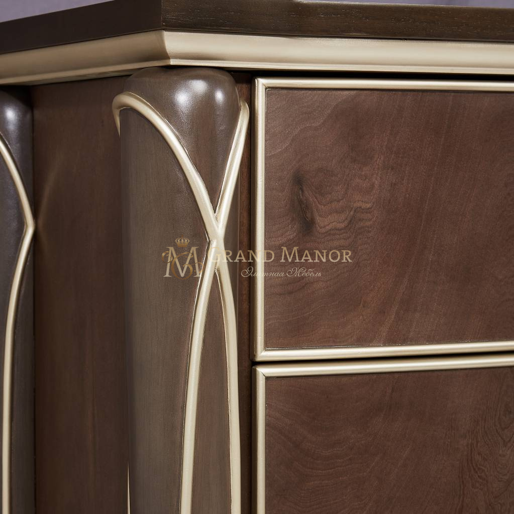 Ручки выдвижных ящиков, ножки и подрамник выполнены в цвете Шардоне.