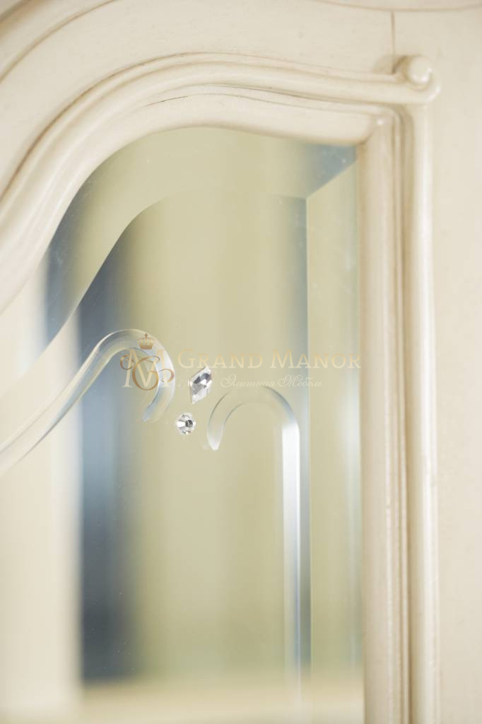 Декоративные элементы, богато украшающие буфет, изготовлены вручную. Применение для отделки периметра буфета состаренной краски придает изделию вид старины. Элегантные металлические ручки украшают кристаллы Swarovski.