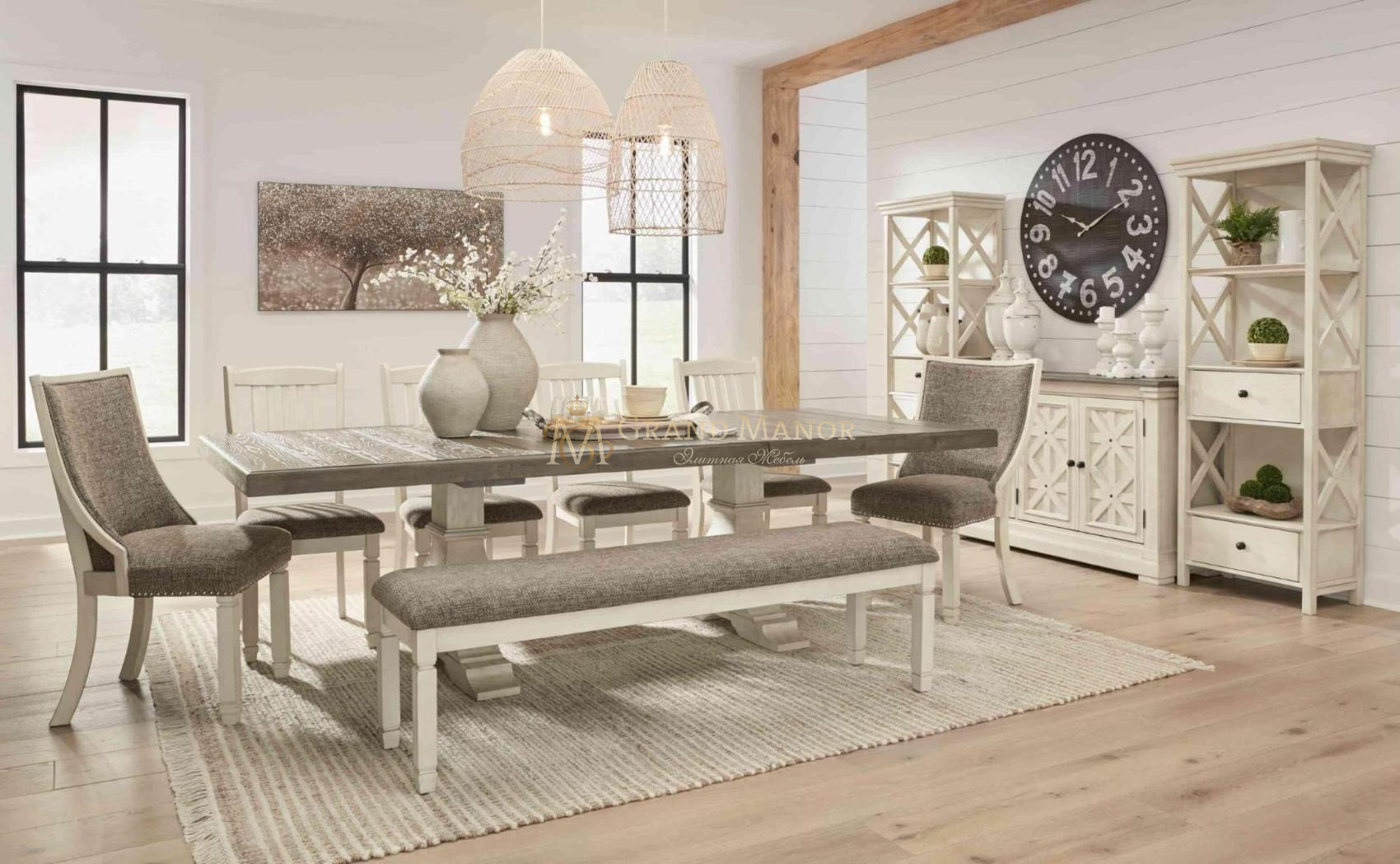 Красота этой мягкой обеденной скамьи - это то, чем можно насладиться. Предлагая комфорт загородного коттеджа и свежий колорит загородного дома, просторная скамейка соблазняет мягким сиденьем, обтянутым тяжелой тканью, которая дополняет модную текстурированную белую отделку под старину.