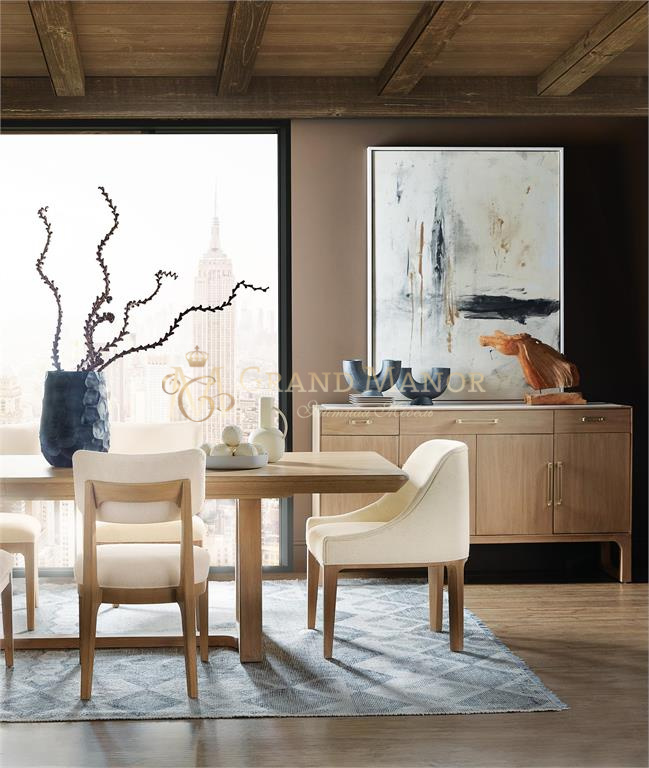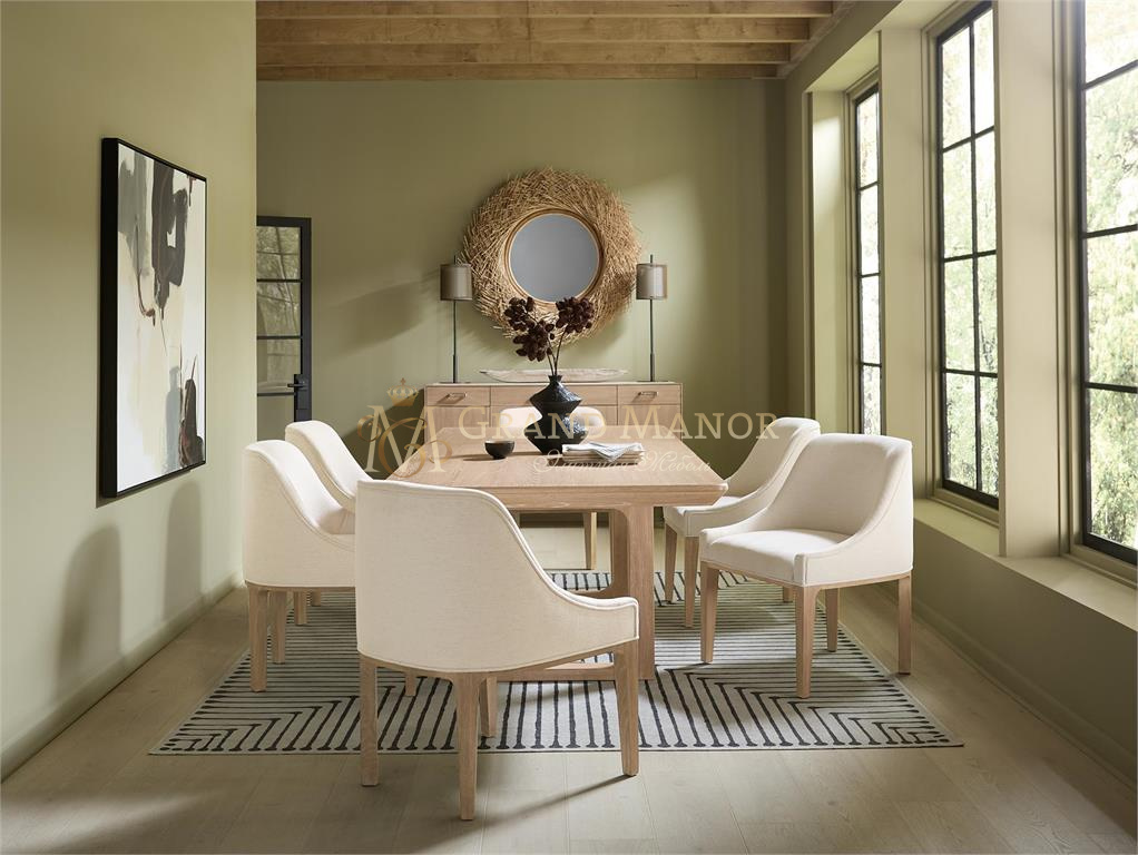 Отделка из дуба Desert придает ему деревенский оттенок, а ткань Levi Oyster - мягкий современный вид.