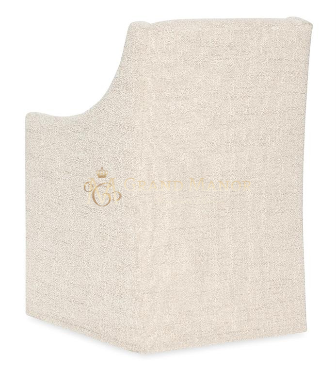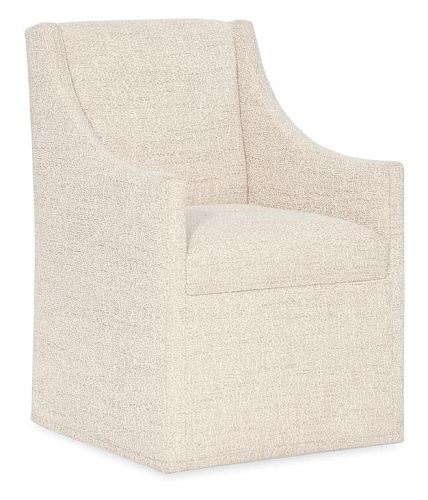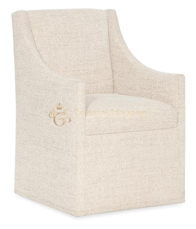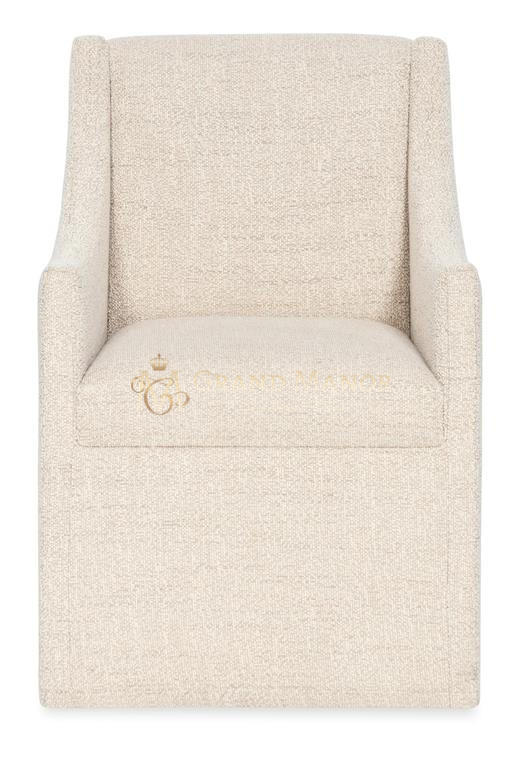 Кресло Eleana на колесиках, полностью обитое классической льняной тканью бежевого цвета, придаст вашему обеденному пространству универсальность.