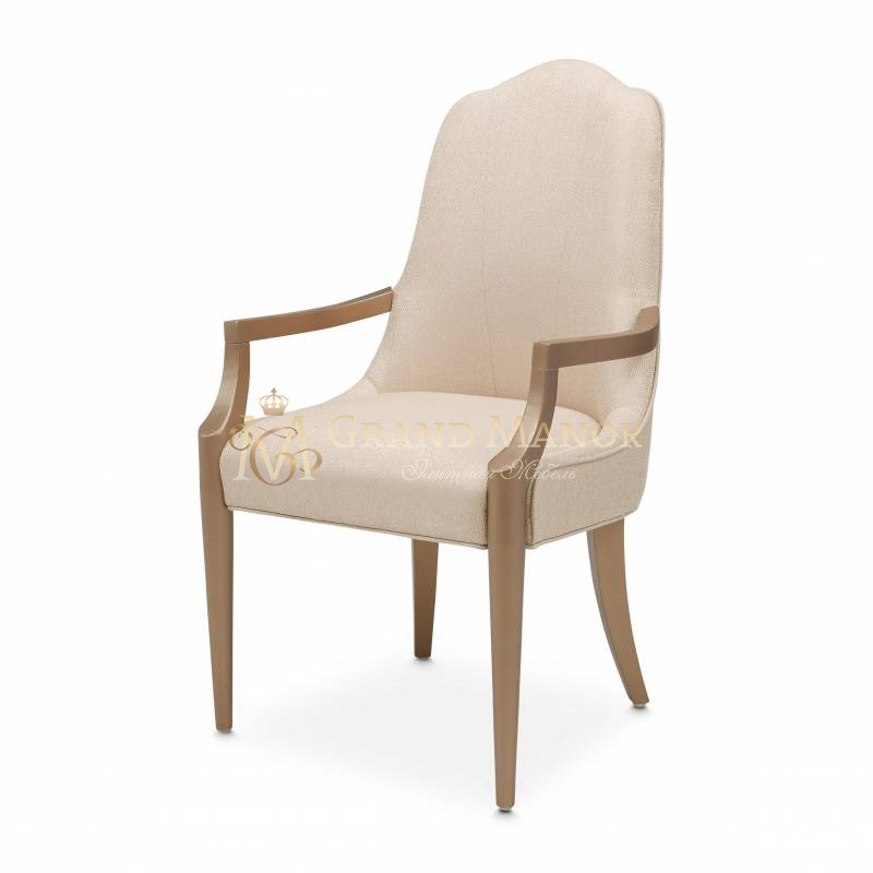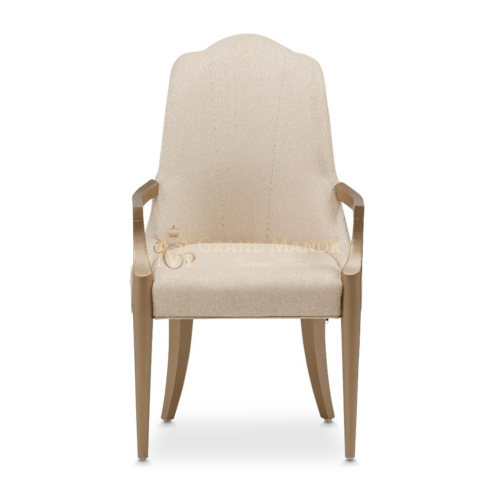 Сделайте ваш ужин максимально элегантным! Кресло Malibu Crest отличается мерцающей текстурой жаккардовой ткани, мягким блеском полированных золотых подлокотников, ножек и изящным кольцевым акцентом на спинке кресла. Ваше современное обеденное пространство готово к этому гламурному дизайну!