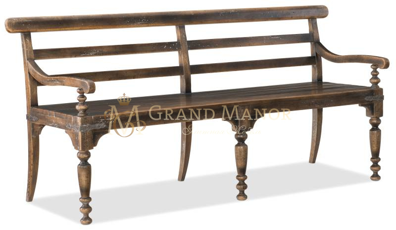 Деревянные сиденье и спинка. С комфортом могут сидеть 3 человека.