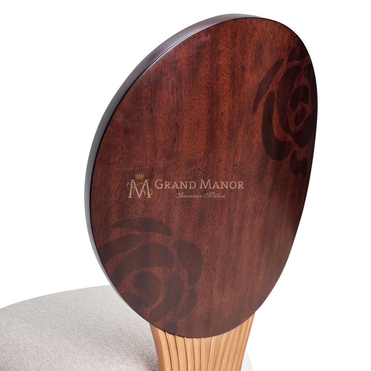 Обеденный стул Camellia Field — это гармония элегантности и комфорта. вальная спинка украшена изысканным маркетри в виде цветка камелии.