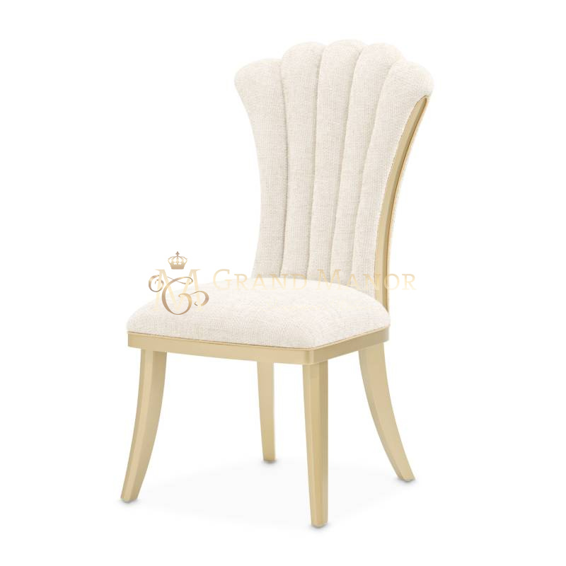 Стул Fantosini Gold Side — это воплощение изящества и комфорта. Его скульптурная форма и элегантная отделка делают его идеальным для любого приема пищи. Спинка с рифлением расширяется книзу, создавая силуэт, вдохновленный классическими ракушками, но в современном стиле.