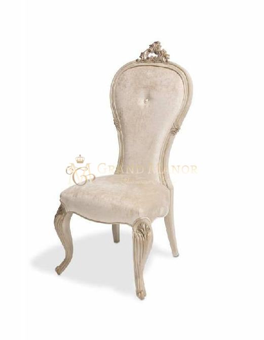Роскошный дизайн стульев без подлокотников подчеркивают изысканные элементы дизайна, резьба, выполненные мастерами компании вручную. Узнать стулья из коллекции Platine De Royale легко по декоративной вставке в виде короны, венчающей изогнутую спинку. Корона инкрустирована кристаллами Swarovski.
