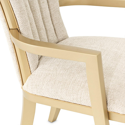 Обеденное кресло Fantosini Gold — это элегантное сочетание стиля и удобства, которое достойно украшает любой обеденный стол. Скульптурная спинка с мягкой обивкой из натурального бежевого шенилла изящно расширяется. Блестящие золотые вставки и угловатые подлокотники придают стулу изысканный вид, сочетая строгость с комфортом. Расклешенные ножки в золотой отделке дополняют силуэт, делая этот стул идеальным выбором для любого конца стола.