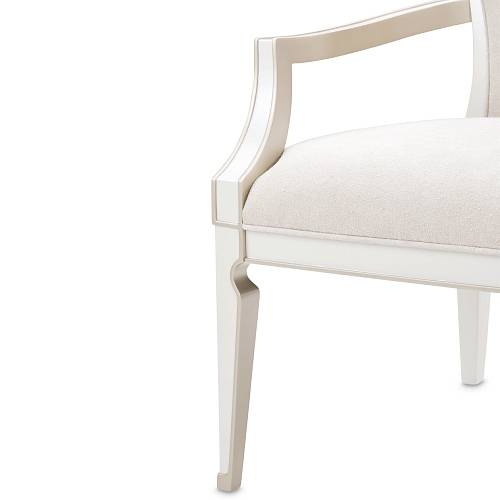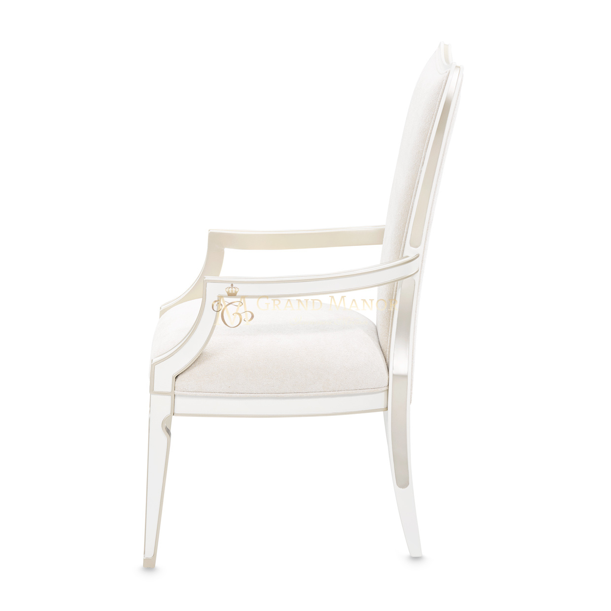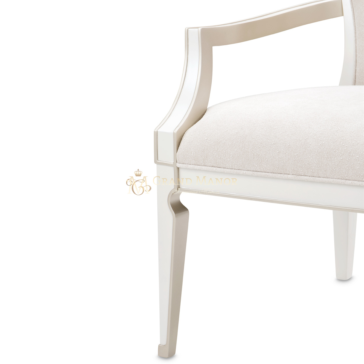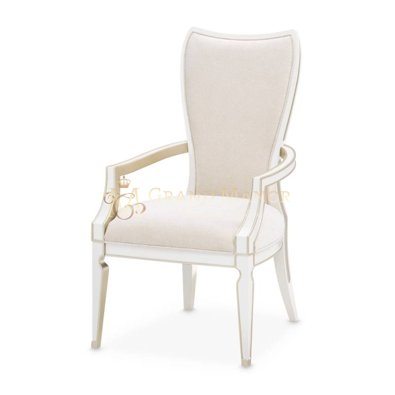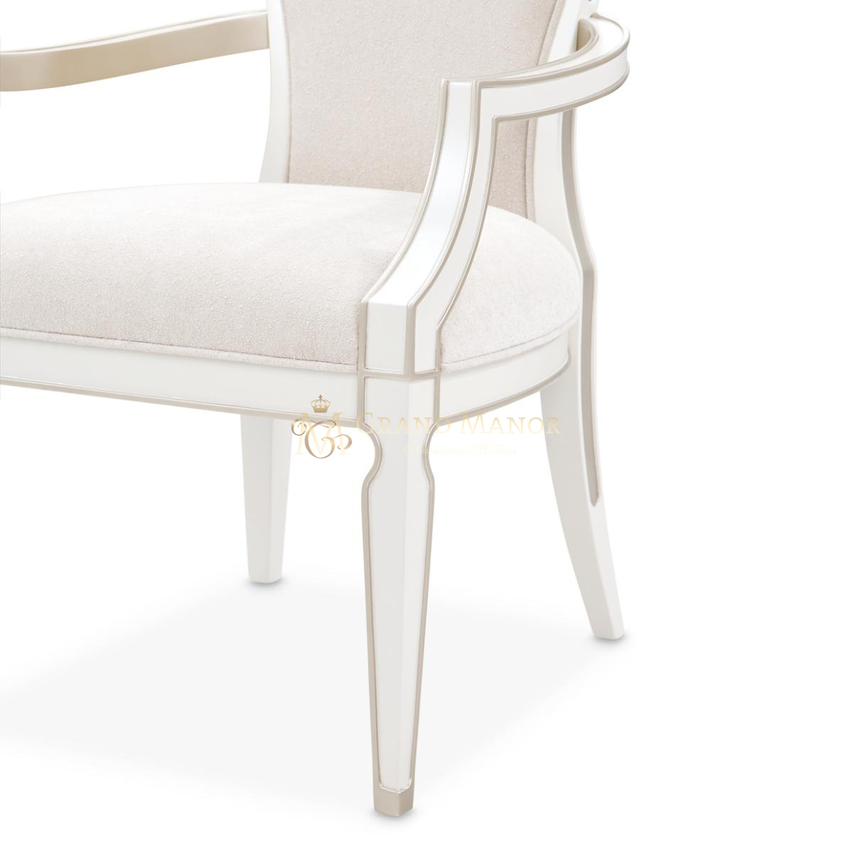 Обеденное кресло La Marisia — это сочетание изысканной элегантности и комфорта. Обивка из роскошного мягкого шенилла нежного оттенка придает креслу утонченность. Скульптурная рама, украшенная жемчугом и вставками цвета шампанского, подчеркивает нежные изгибы и плавные линии.